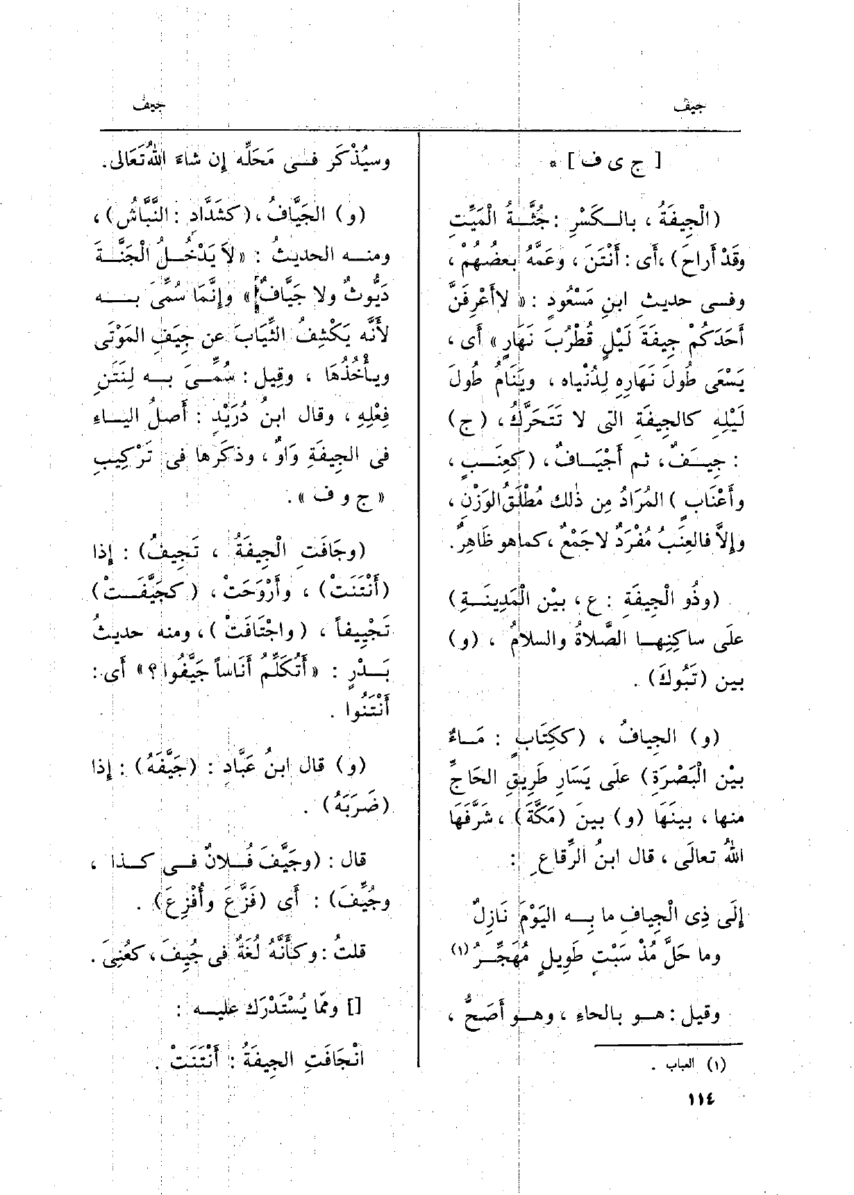 وذُو الْجِيفَةِ: ع، بيْن الْمَدِينَةِ علَى ساكِنِها الصَّلاةُ والسلامُ، وَبَين تَبُوكَ.