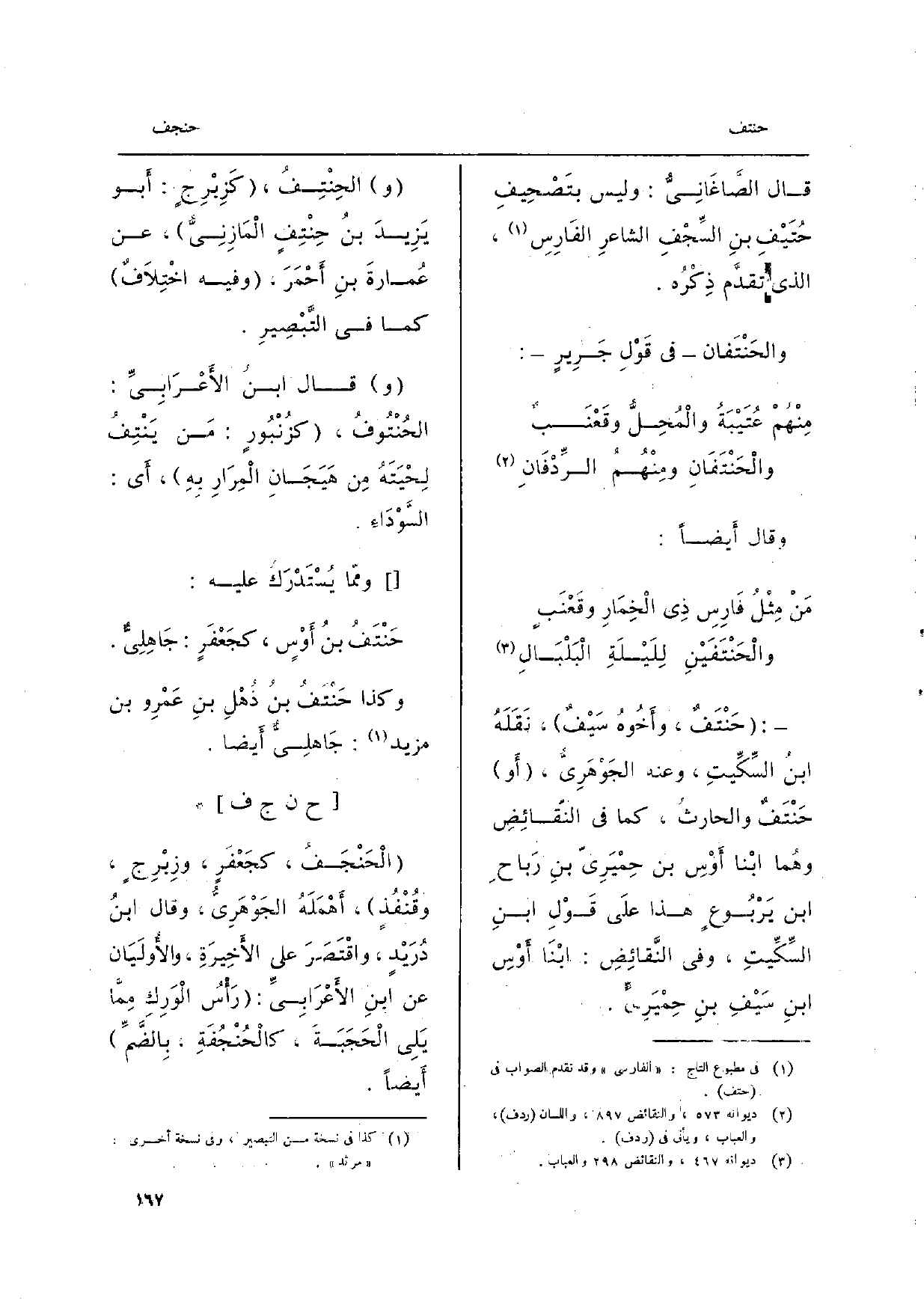 قَالَ الصَّاغَانِيُّ: وَلَيْسَ بتَصْحِيفِ حُتَيْفِ بنِ السِّجْفِ الشاعرِ الفَارِسِ، الَّذِي تقدَّم ذِكْرُه.