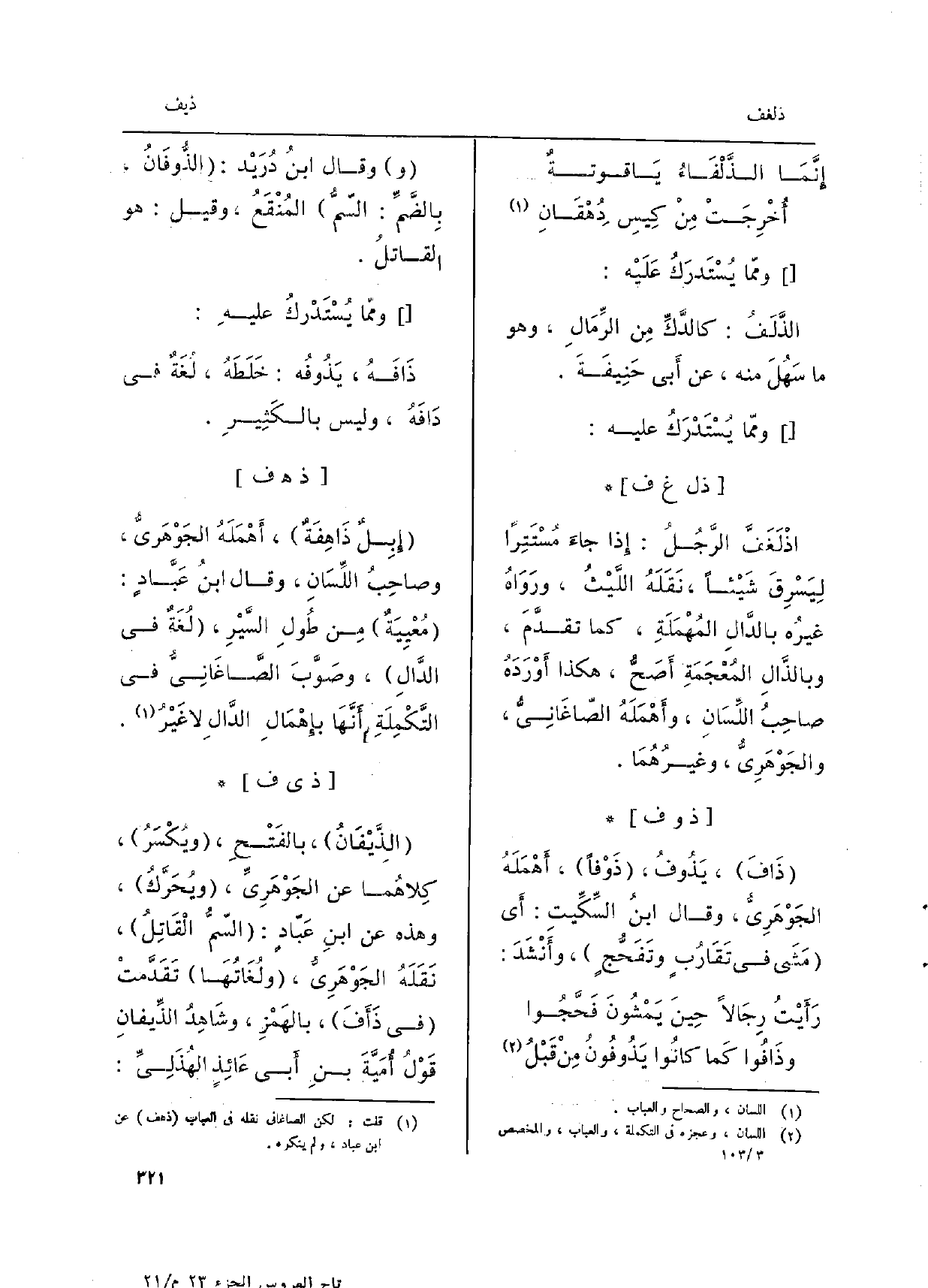 (رَأَيْتُ رِجَالاً حِينَ يَمْشُونَ فَحَّجُوا ... } وذَافُوا كَما كانُوا {يَذُوفونُ مِنْ قَبْلُ)