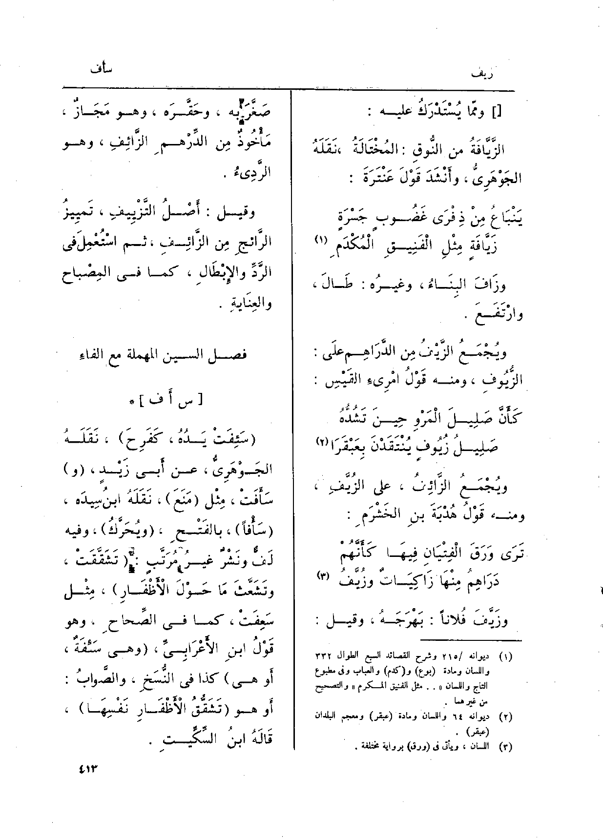 {وزَافَ البِنَاءُ، وغيرُه: طَالَ، وارْتَفَعَ. ويُجْمَعُ} الزَّيْفُ مِن الدَّرَاهِم علَى: الزُّيُوفِ، وَمِنْه قَوْلُ امْرِئِ القَيْسِ: