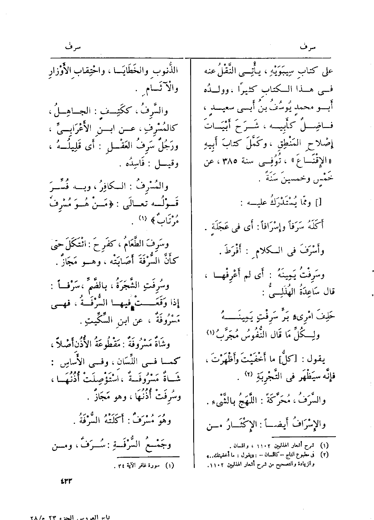 كتاب تاج العروس (اسم الجزء: 23)