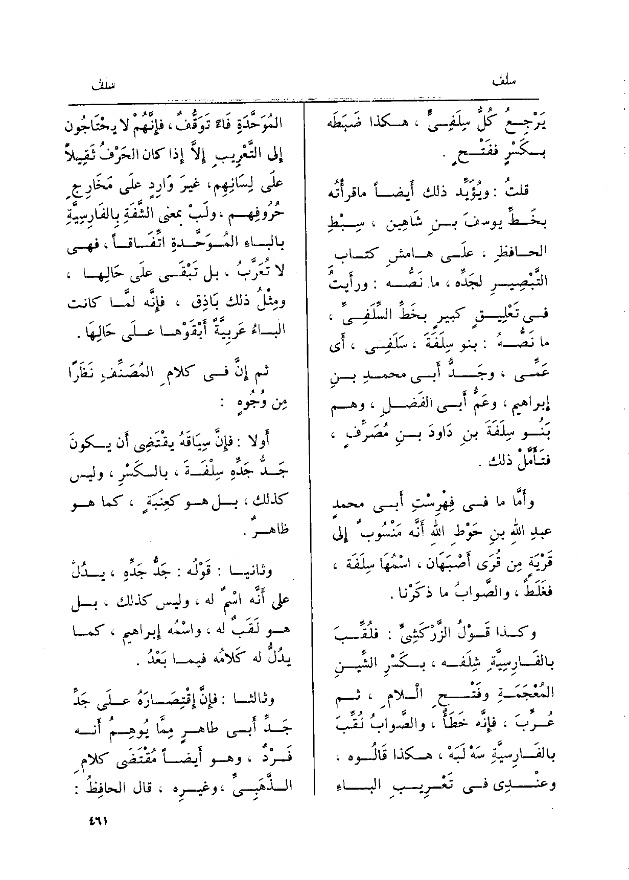 ثمَّ إِن فِي كلامِ المُصَنِّفِ نَظَراً مِن وُجُوهٍ: أَولا: فإنَّ سِيَاقَهُ يقْتَضِي أَن يكونَ جَدُّ جَدِّهِ سِلْفَةَ، بالكَسْرِ، وَلَيْسَ كَذَلِك، بل هُوَ كعِنَبَةٍ، كَمَا هُوَ ظاهرٌ.