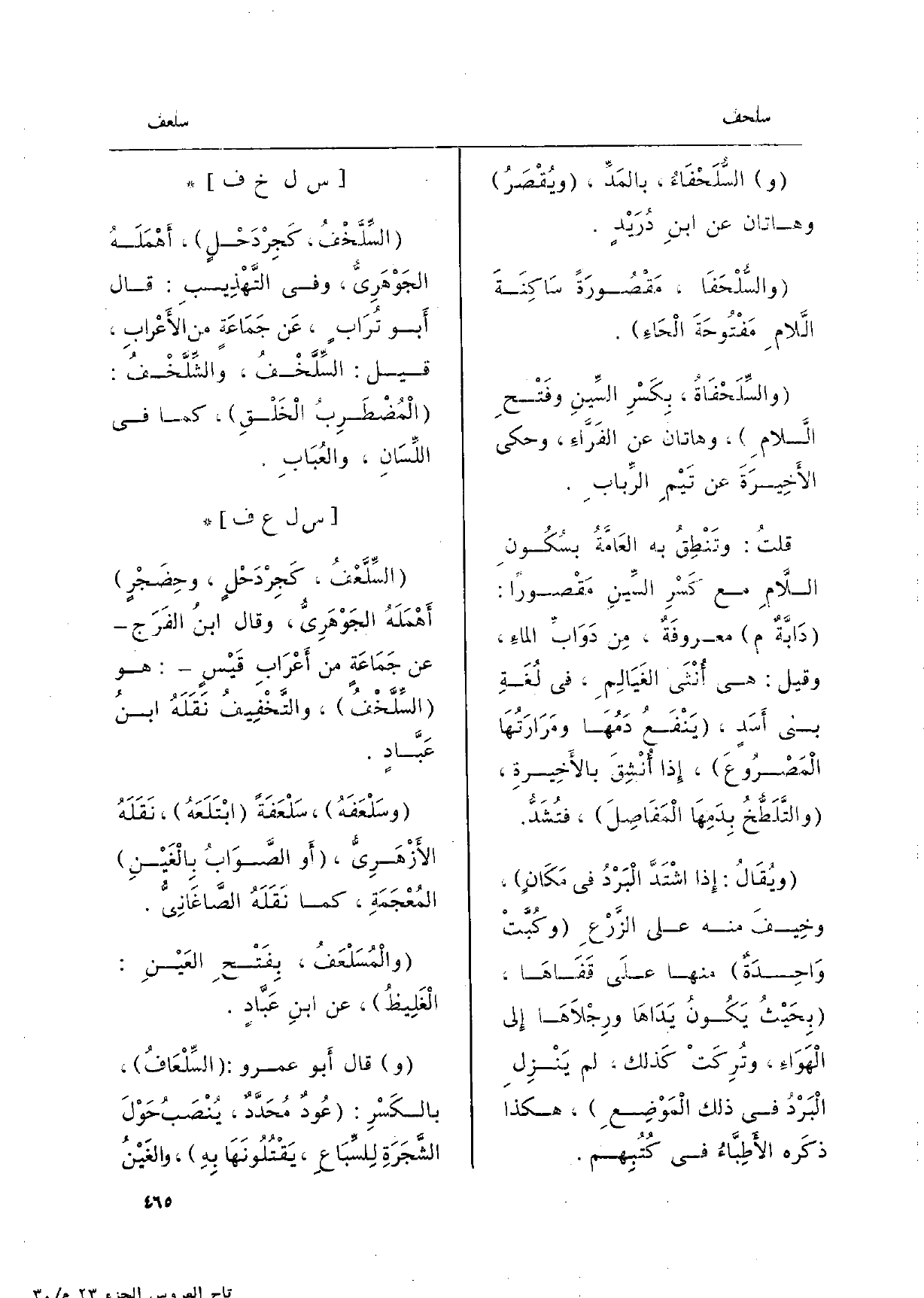 السِّلَّعْفُ، كَجِرْدَحْلٍ، وحِضَجْرٍ أَهْمَلَهُ الجَوْهَرِيُّ، وَقَالَ ابنُ الفَرَج عَن جَمَاعَةٍ من أَعْرَابِ قَيْسٍ: هُوَ السِّلَّخْفُ، والتَّخْفِيفُ نَقَلَهُ ابنُ عَبَّادٍ.