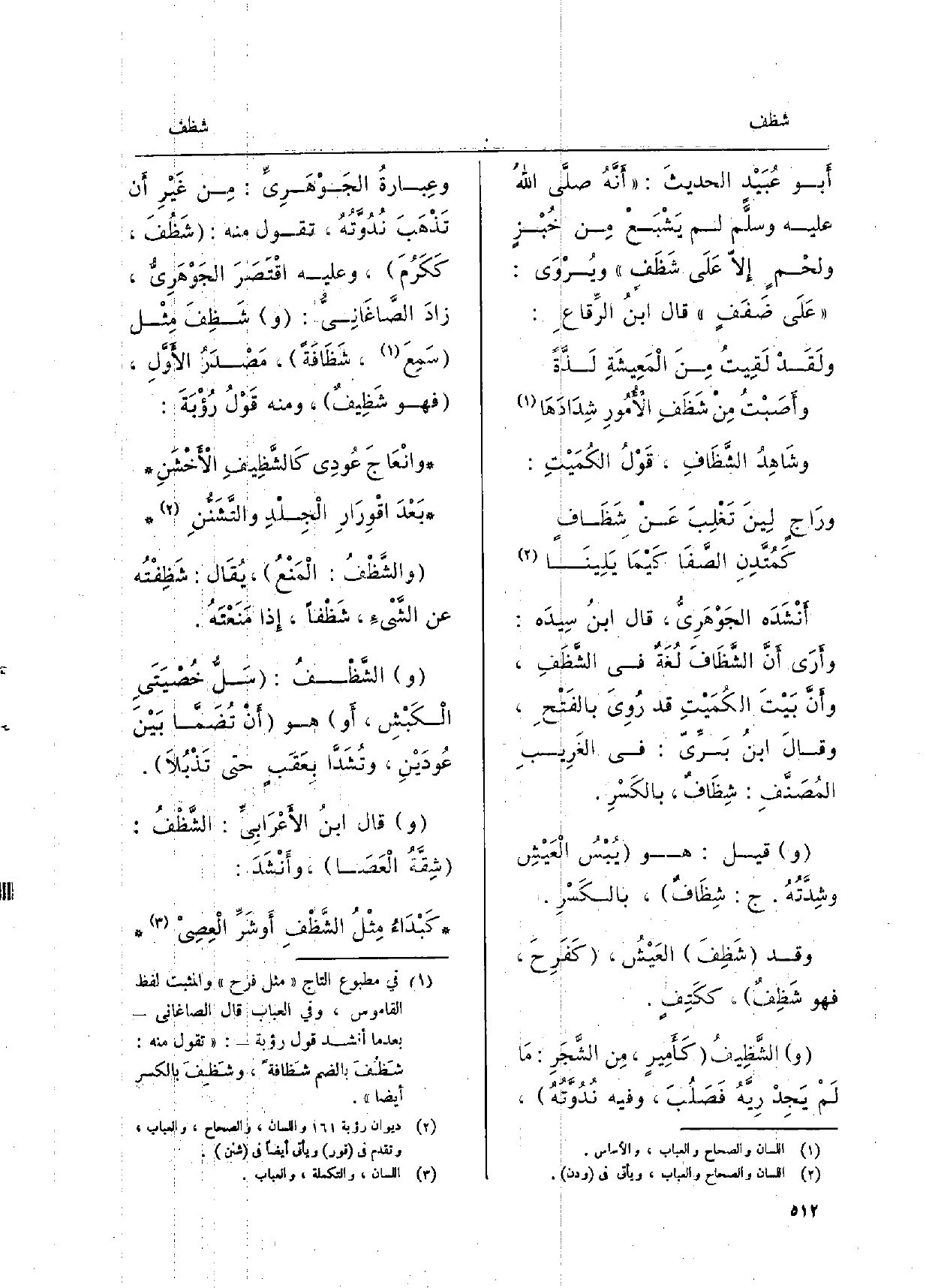 أَبو عُبَيْدٍ الحديثَ: أَنَّهُ صلَّى اللهُ عَلَيْهِ وسلَّم لم يَشْبَعْ مِن خُبْزٍ ولحْمٍ إِلاّ عَلَى شَظَفٍٍ ويُرْوَي: عَلَى ضَفَفٍ قَالَ ابنُ الرِّقاعِ: