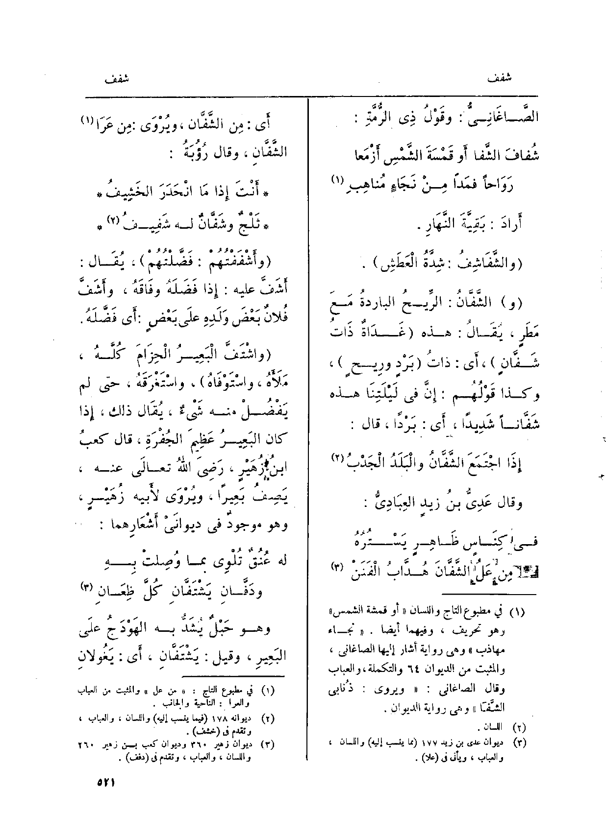 أَي: مِن الشَّفَّان، ويُرْوَي: مِن عَرَا الشَّفَّانِ، وَقَالَ رُؤُبَةُ: أَنْتَ إِذا مَا انْحَدَرَ الخَشِيفُ ثَلْجٌ وشَفَّان لَهُ {شَفِيفُ} وأَشْفَفْتُهُمْ: فَضَّلْتُهُمْ، يُقَال: {أَشَفَّ عَلَيْهِ: إِذا فَضَلَهُ وفَاقَهُ،} وأَشَفَّ فُلانٌ بَعْضَ وَلَدِهِ علَى بَعْضٍ:)