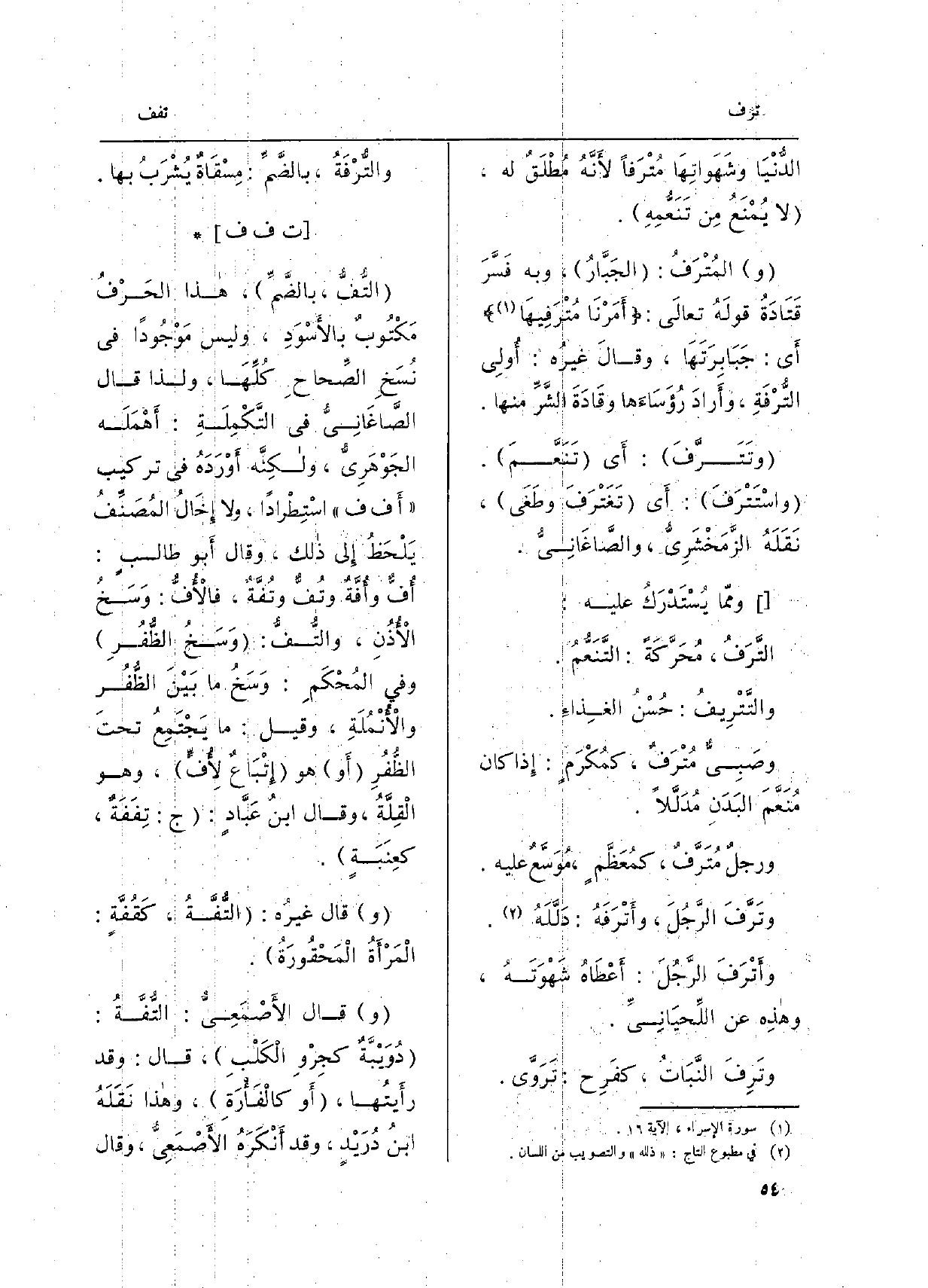 وأَتْرَفَ الرَّجُلَ: أَعْطَاهُ شَهْوَتَهُ، وهذِه عَن اللِّحيَانِيِّ.)