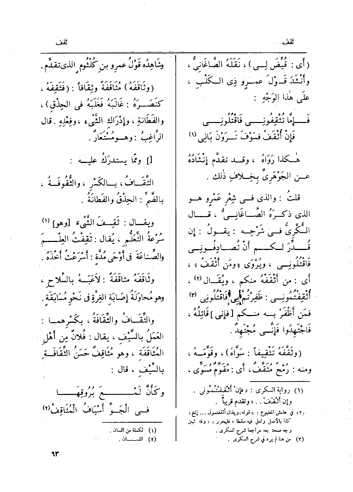 قلتُ: وَالَّذِي فِي شِعْرِ عَمْروٍ هُوَ الَّذِي ذكرَهُ الصَّاغَانيُّ، قَالَ السُّكَّرِيُّ فِي شَرْحِه: يقولُ إِن قُدِّرِ لكم أَنْ تُصَادِفُونِي فَاقْتُلُونِي، ويُرْوَي) ومَن أَثْقَفْ (، أَي: من أَثْقَفْهُ مِنْكُم، ويُقَال، أُثْقِفْتُمُونِي: ظَفِرْتُمْ بِي فَاقْتُلُونِي فمَن أَظْفَرْ بِهِ مِنْكُم فإِني قَاتِلُهُ، فَاجْتَهِدُو فإِني مُجْتَهِدٌ.
