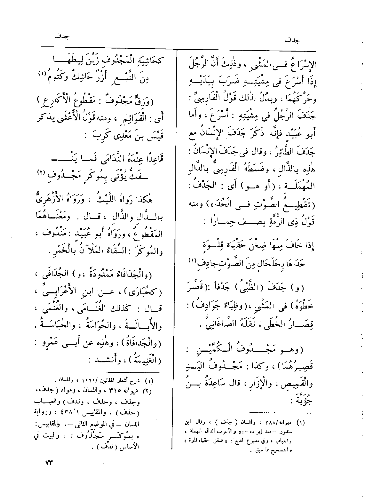 وَهُوَ مَجْدُوفث الْكُمَّيْنِ: َقِصيرُهُمَا، وَكَذَا مَجْدُوفُ اليَدِ والْقَمِيصِ، والإِزَارِ، قَالَ سَاعِدَةُ بنُ جُؤَيَّةَ: