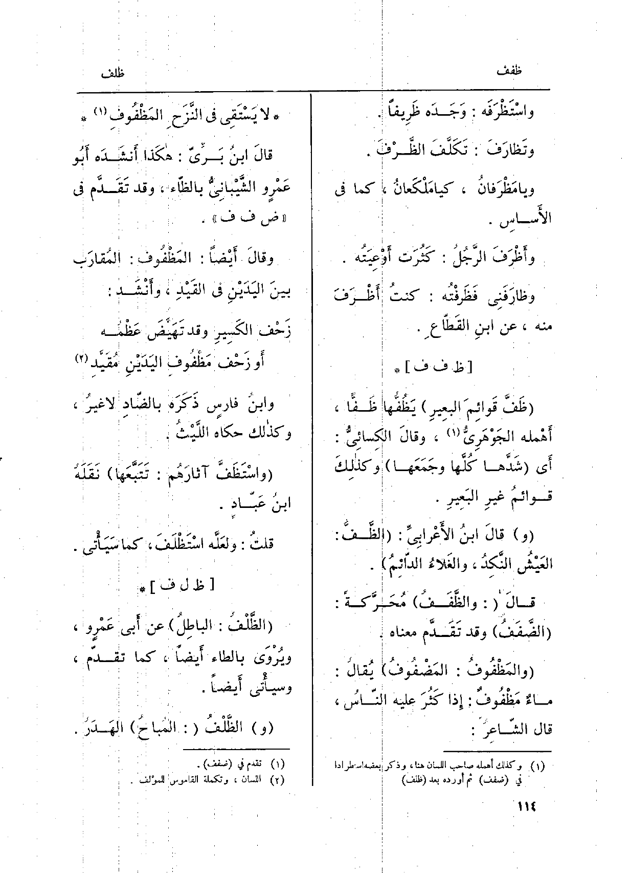 وابنُ فارسٍ ذَكَرَه بالضّادِ لَا غيرُ، وَكَذَلِكَ حَكَاهُ اللَّيْثُ. واسْتَظَفَّ آثارَهُم: تَتَبَّعَها نَقَلَهُ ابنُ عَبّادٍ.