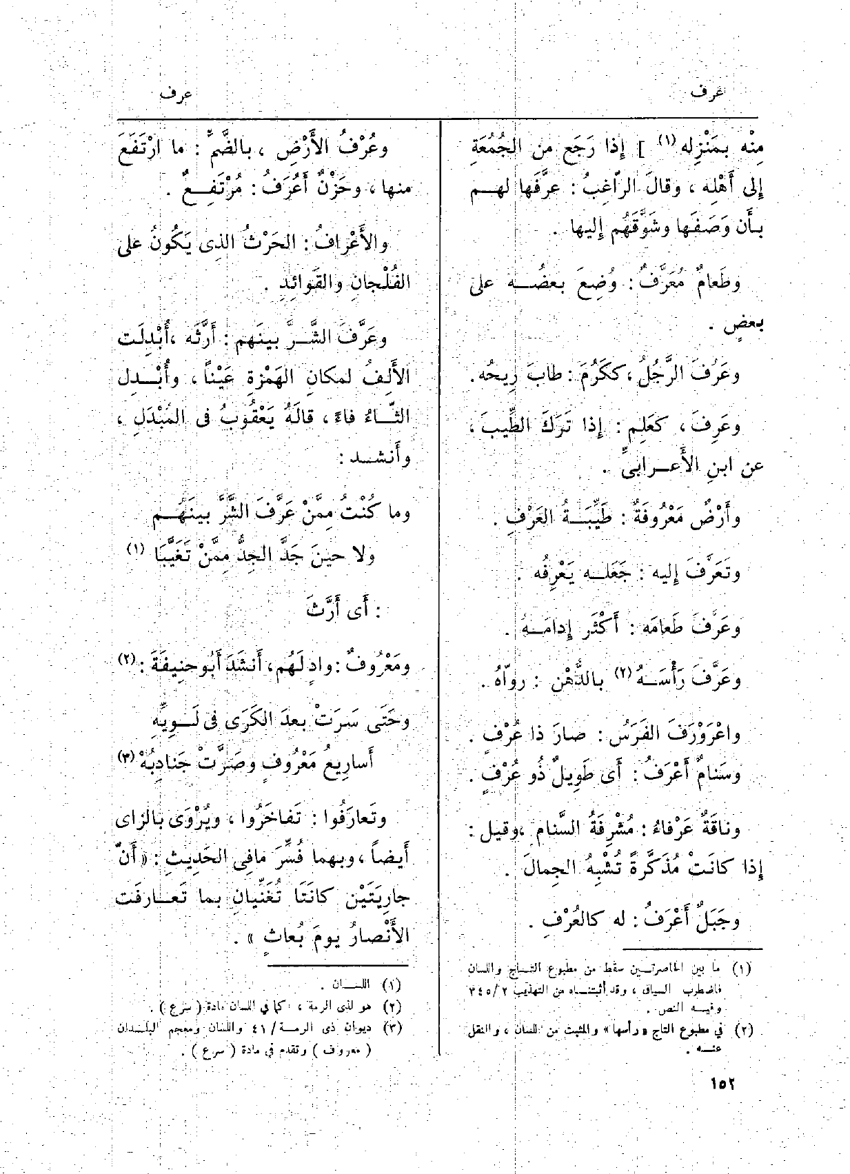 واعْرَوْرَفَ الفَرَسُ: صارَ ذَا عُرْفٍ. وسَنامٌ أَعْرَفُ: أَي طَوِيلٌ ذُو عُرْفٍ. د وناقَةٌ عَرْفاءٌ: مُشْرِفَةُ السَّنامِ، وَقيل: إِذا كانَتْ مُذَكَّرةً تُشْبِهُ الجِمالَ. وجَبَلٌ أَعْرَفُ: لَهُ كالعُرْفِ.