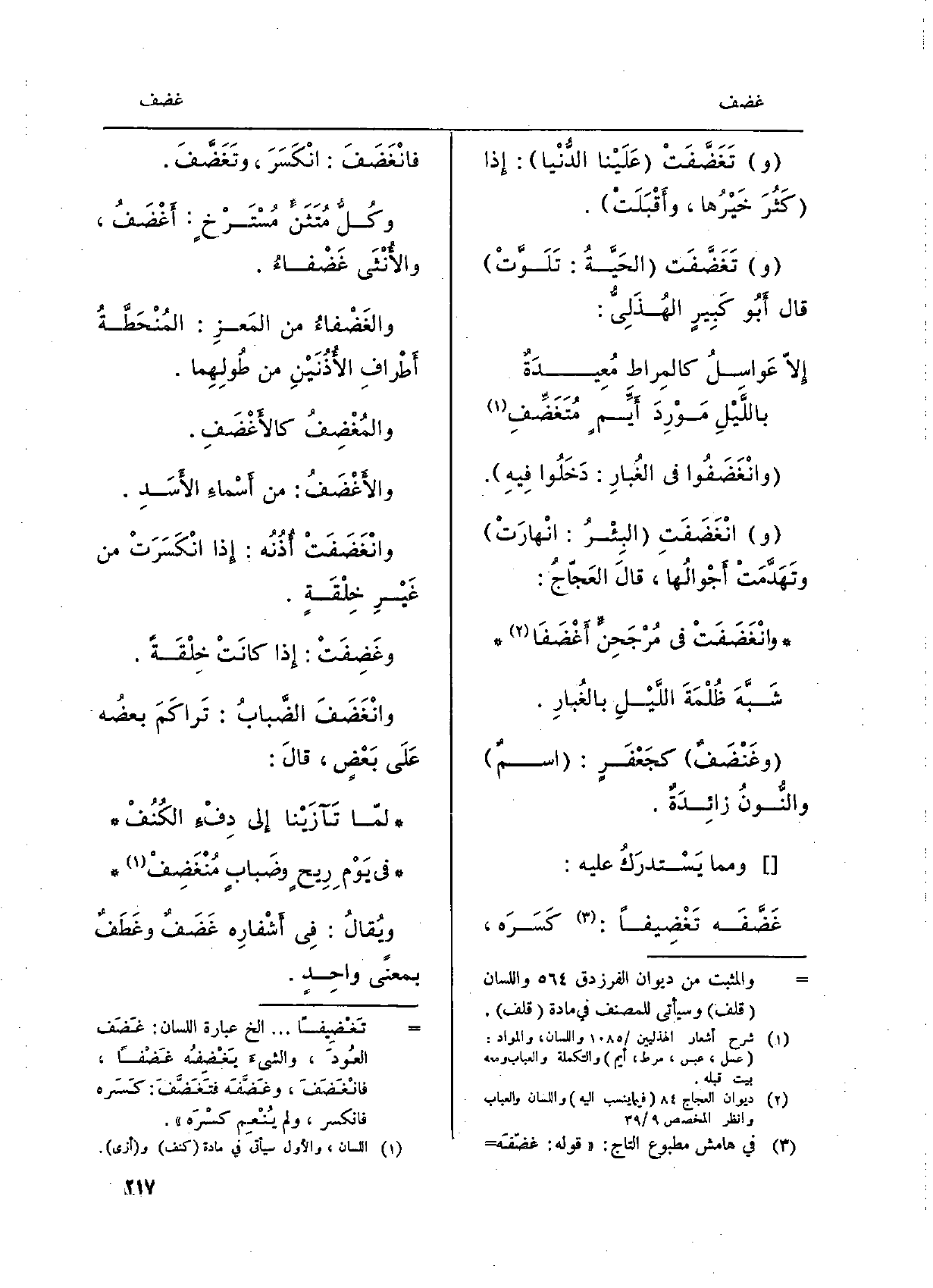 وتَغَضَّفَتْ عَلَيْنا الدُّنْيا إِذا كَثُرَ خَيْرُها، وأَقْبَلَتْ. وتَغَضَّفَت الحَيَّةُ: تَلَوَّتْ قَالَ أَبو كَبِيرٍ الهُذَلِيُّ: