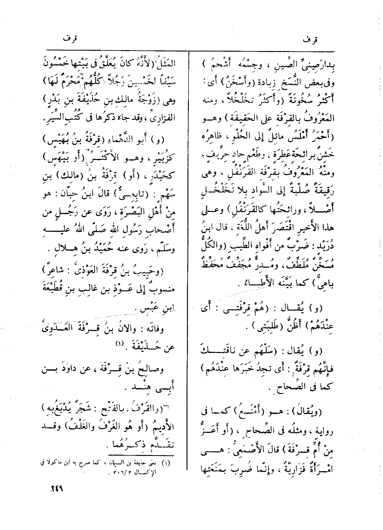 وفاتَه: والانُ بنُ قِرْفَةَ العَدَوِيُّ عَن حُذَيْفَةَ. وصالِحُ بنُ قِرْفَةَ، عَن داوُدَ بن أَبِي هِنْد. والقَرْفُ،)
