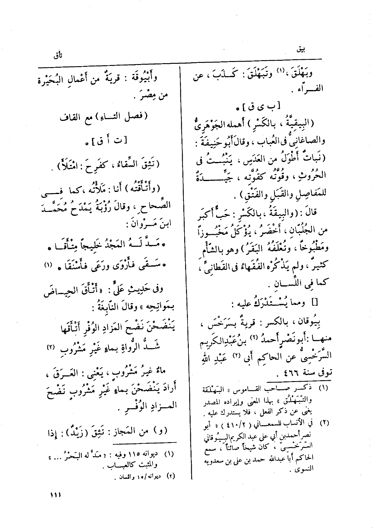 (فصل التَّاء مَعَ الْقَاف)