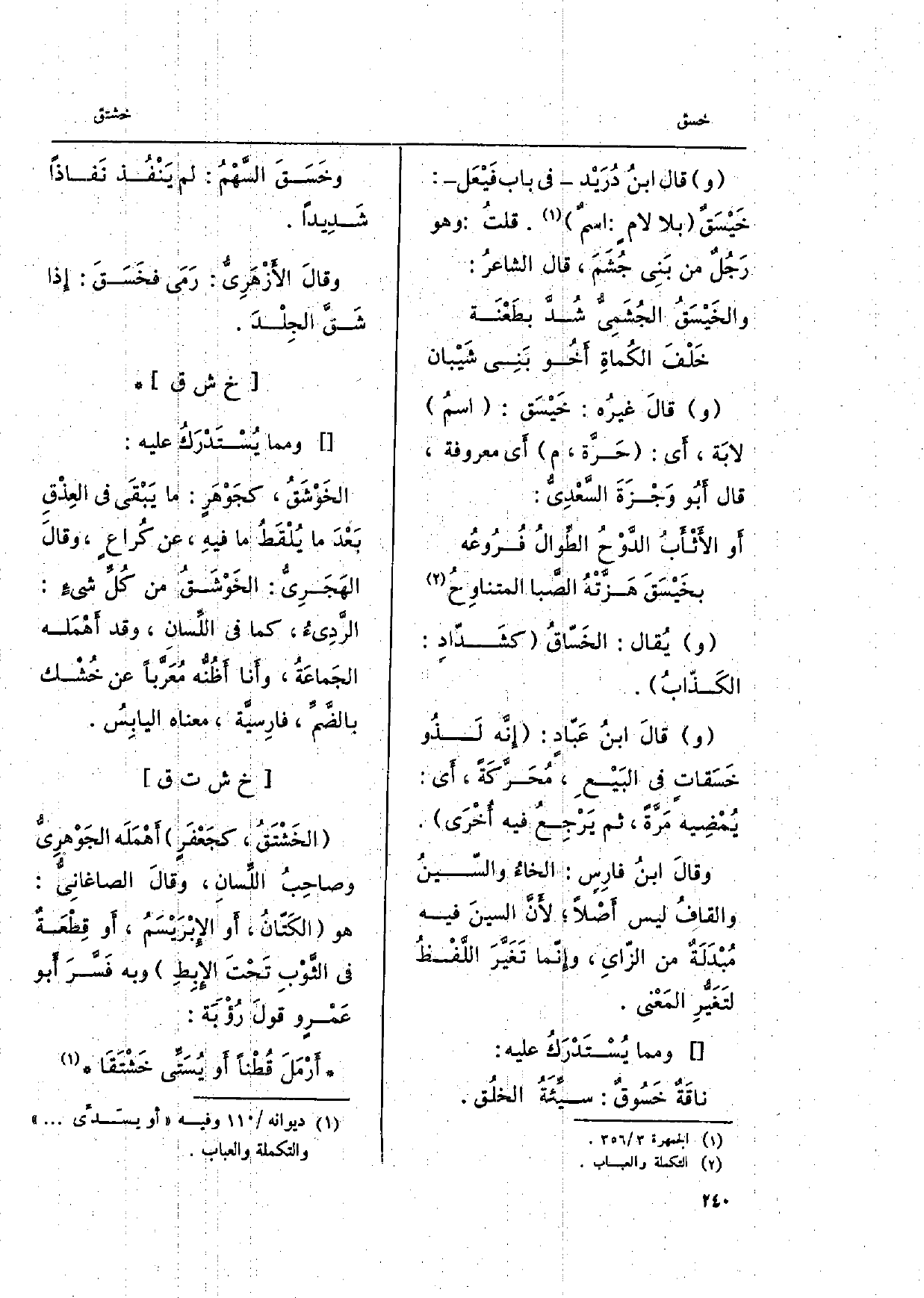 وَمِمَّا يسْتَدرك عَلَيْهِ: الخَوْشَقُ، كجَوْهَرٍ: مَا يَبْقَى فِي العِذْقِ بَعْدَ مَا يُلْقَط مَا فيهِ، عَن كُراعٍ، وقالَ الهَجَرِيُّ: الخَوْشَقّ من كُلِّ شيءٍ: الرَّدِىءُ، كَمَا فِي اللِّسان، وَقد أَهْمَله الجَماعَةُ، وَأَنا أَظُنه مُعَرَّباً عَن خُشْك بالضَّمِّ، فارِسيَّة، مَعْنَاهُ اليابِس.