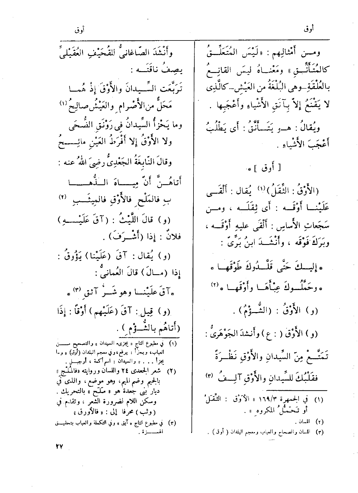 (و) } الأَوْقُ: الشؤْمُ، والأَوْق: ع وأَنشد الجوهَري: