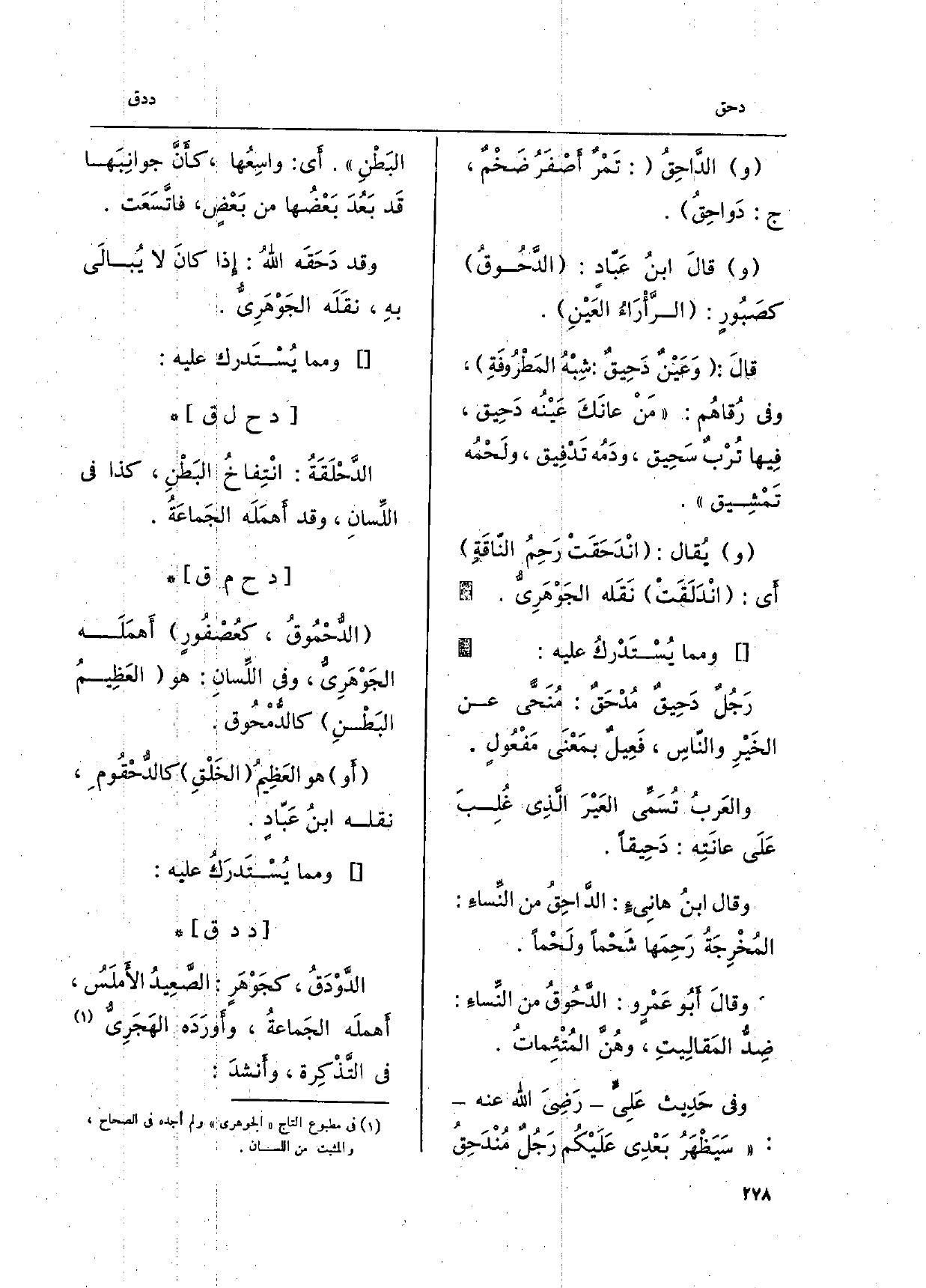 وَمِمَّا يسْتَدرك عَلَيْهِ: رَجُل دَحِيقٌ مُدْحَقٌ: مُنَحًّى عَن الخيْرِ والنّاس، فَعِيلٌ بمَعْنَى مَفْعُولٍ.