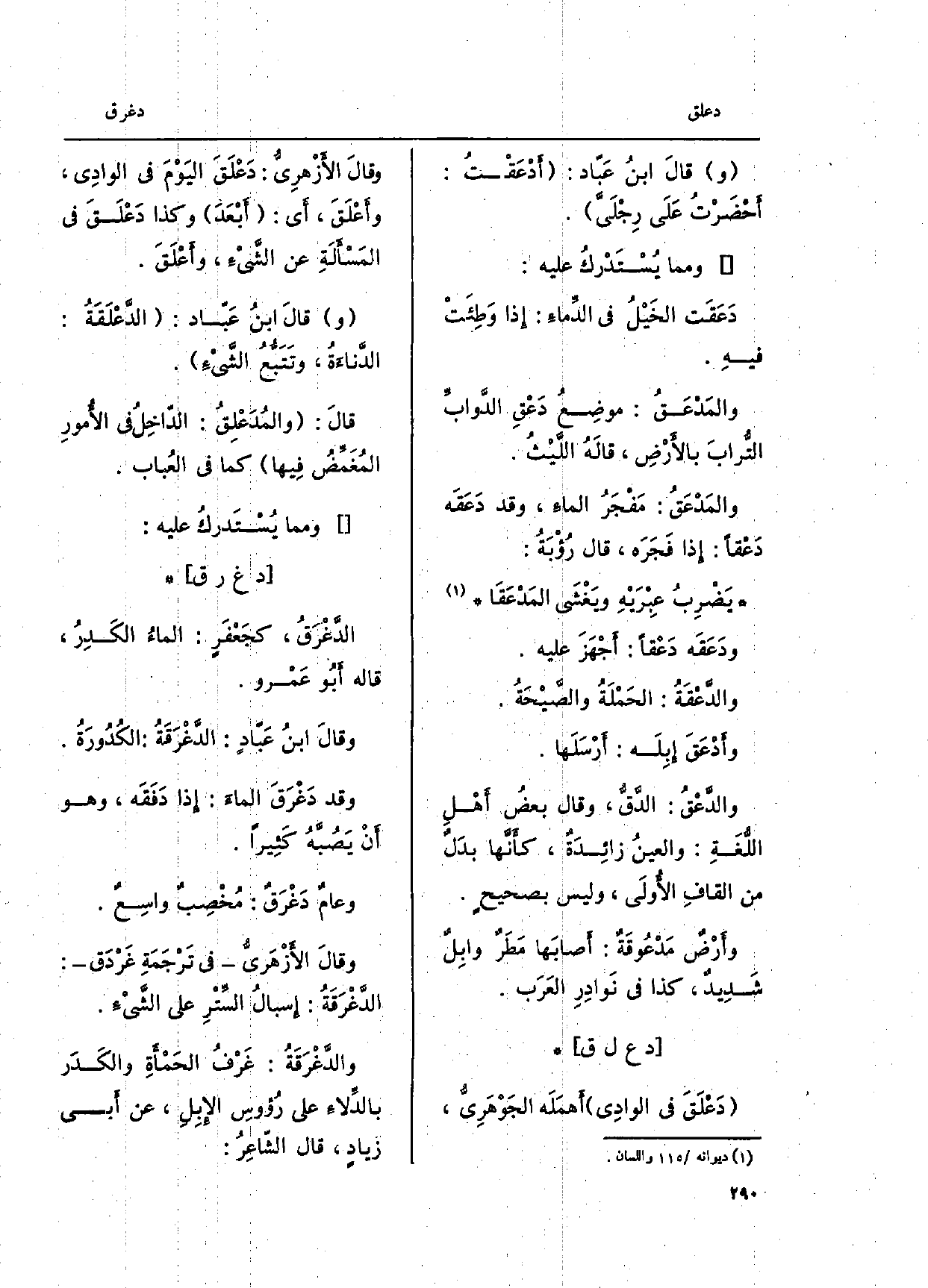 دَعْلَقَّ فِي الوادِي أَهملَه الجَوهرَيِ، وقالَ الأزْهرِي: دَعْلَقَ اليَوْمَ فِي الوادِي، وأَعْلَقَ، أَي: أّبْعَدَ وَكَذَا دَعْلَقَ فِي المَسْألَةِ عَن الشيءَ، وأَعْلَقَ.
