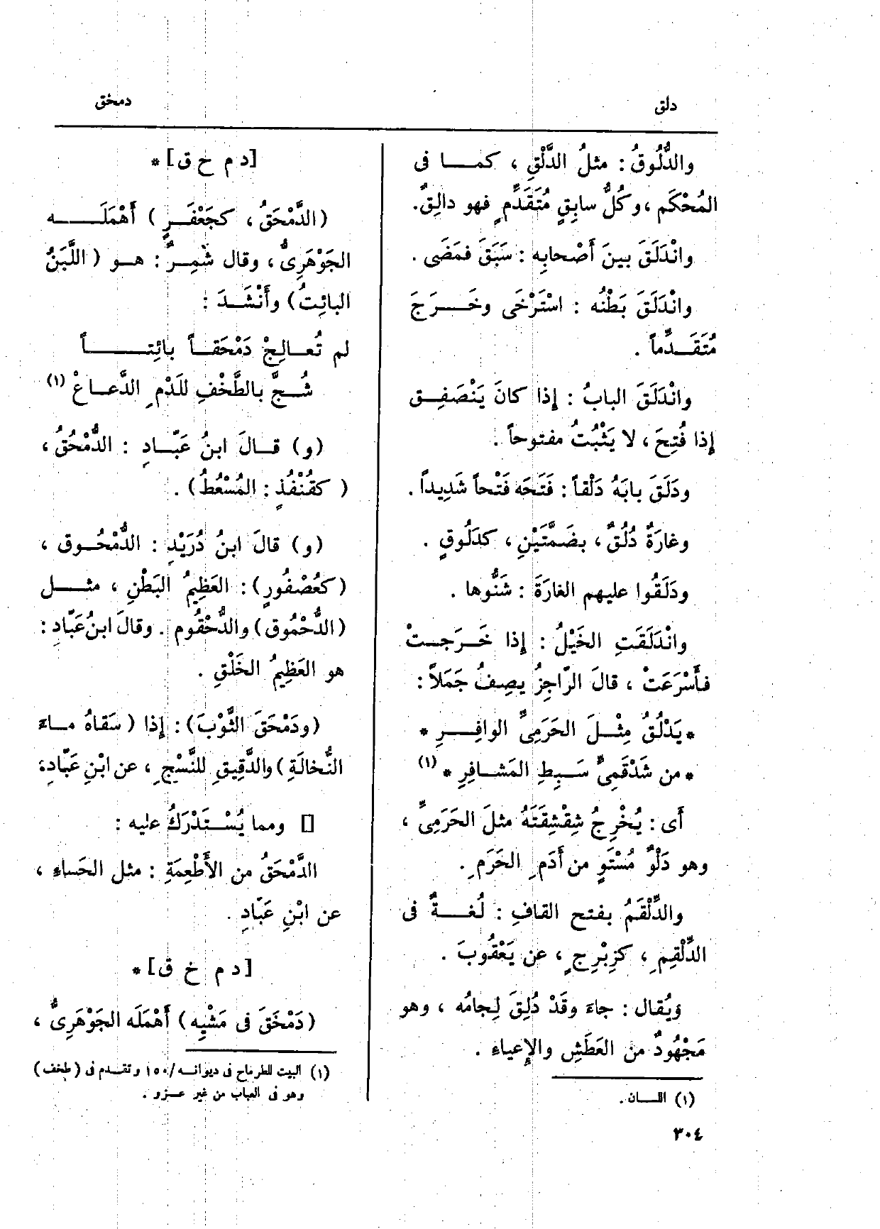 وغارَةٌ دُلُقٌ، بضَمتَيْنِ، كدَلُوقٍ. ودَلَقُوا عَلَيْهِم الغارَةَ: شَنُّوها. وانْدَلَقَتِ الخَيْلُ: إِذا خَرَجتْ فأسْرَعَتْ، قالَ الرّاجِزُ يصِفُ جَمَلاً: يَدْلُقُ مِثْلَ الحَرَمِىِّ الوافِرِ من شَدْقَمِيٍّ سَبِطِ المَشافِرِ أَي: يُخْرِجُ شِقْشِقَتَهُ مثلَ الحَرَمِيِّ، وَهُوَ دَلْوٌ مُسْتَوٍ من أَدَم الحَرَم. والدِّلْقَمُ بِفَتْح القافِ: لُغةٌ فِي الدِّلْقِم، كزِبْرِج، عَن يَعْقُوبَ. ويُقال: جاءَ وقَدْ دُلِقَ لِجامُه، وَهُوَ مَجْهُود من العَطَشِ والإعياءِ.