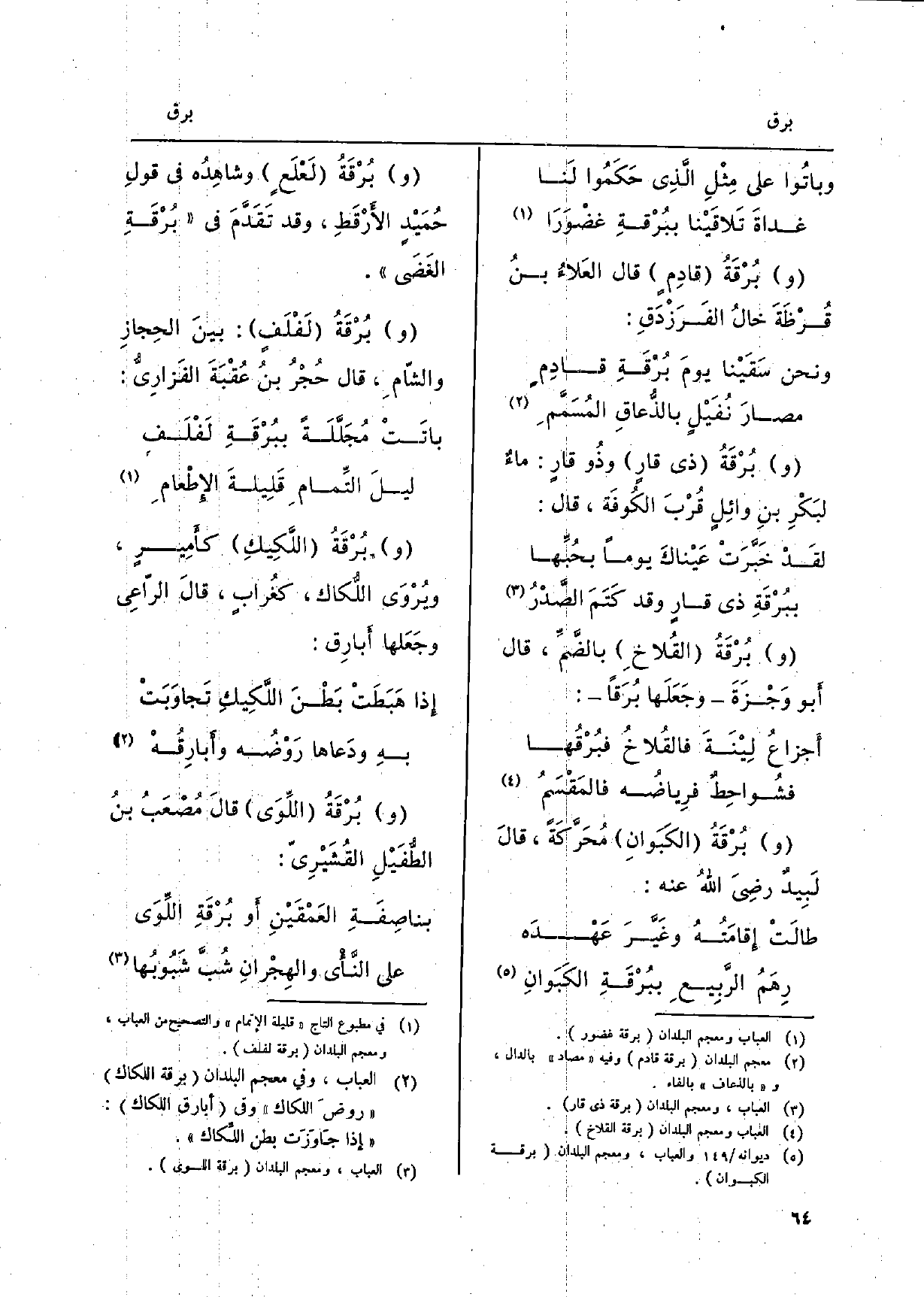 وبُرْقَةُ القُلاخ بالضَّم، قَالَ أَبو وَجزةَ وجَعَلَها بُرَقاً: