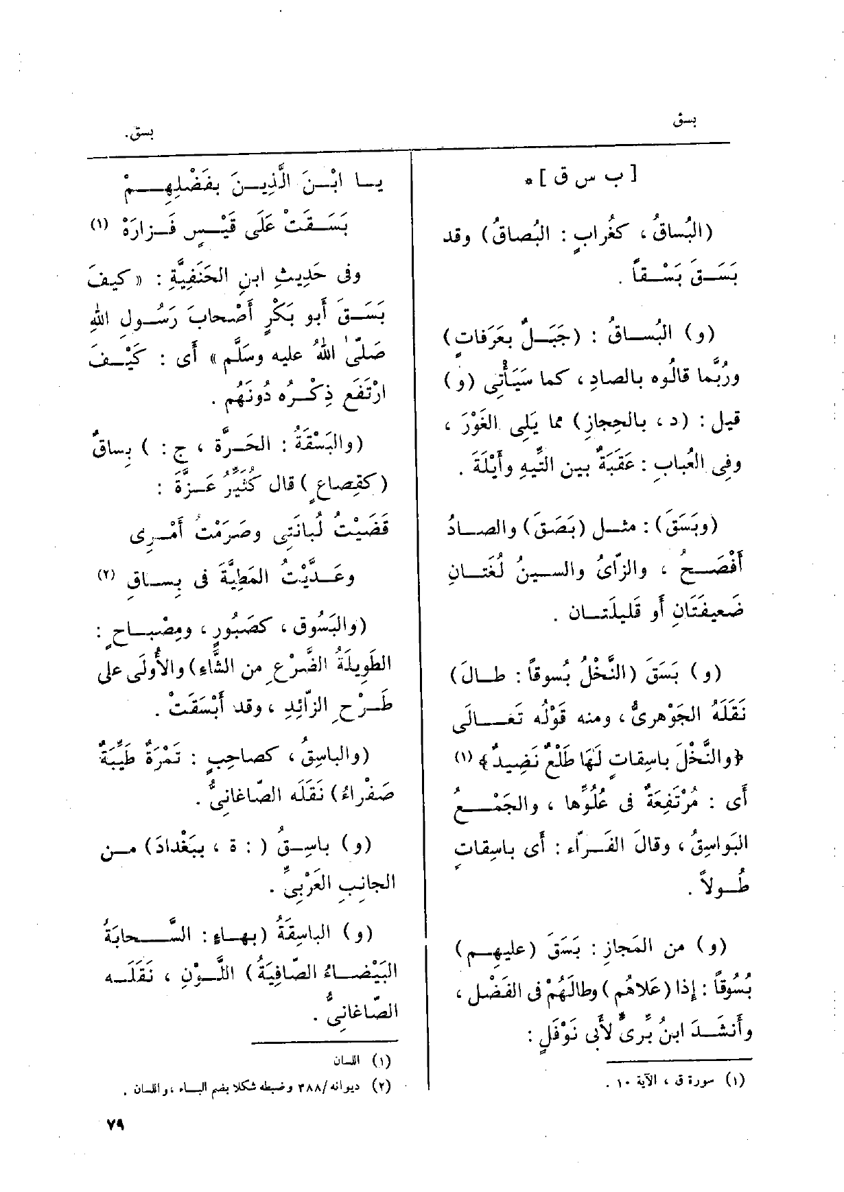 والبسقة الْحرَّة، ج: بساق كقصاع قَالَ كثير غَزَّة: