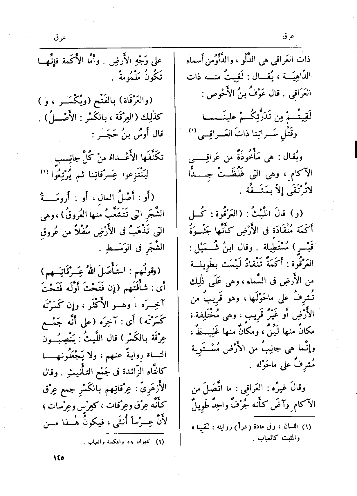 (لَقيتُمْ من تدَرُّئِكُمْ علينا ... وقَتْلِ سَراتِنا ذاتَ العَراقِي)