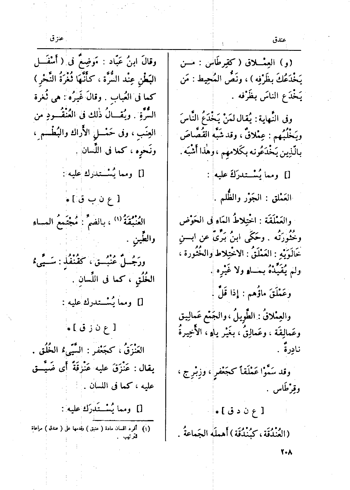 العُنْبُقَة، بالضّمِّ: مجتَمعُ الماءِ والطّين. ورجُلٌ عُنْبُق، كقُنْفُذٍ: سيّئُ الخُلُق، كَمَا فِي اللّسان. وَمِمَّا يُستدرك عَلَيْهِ: