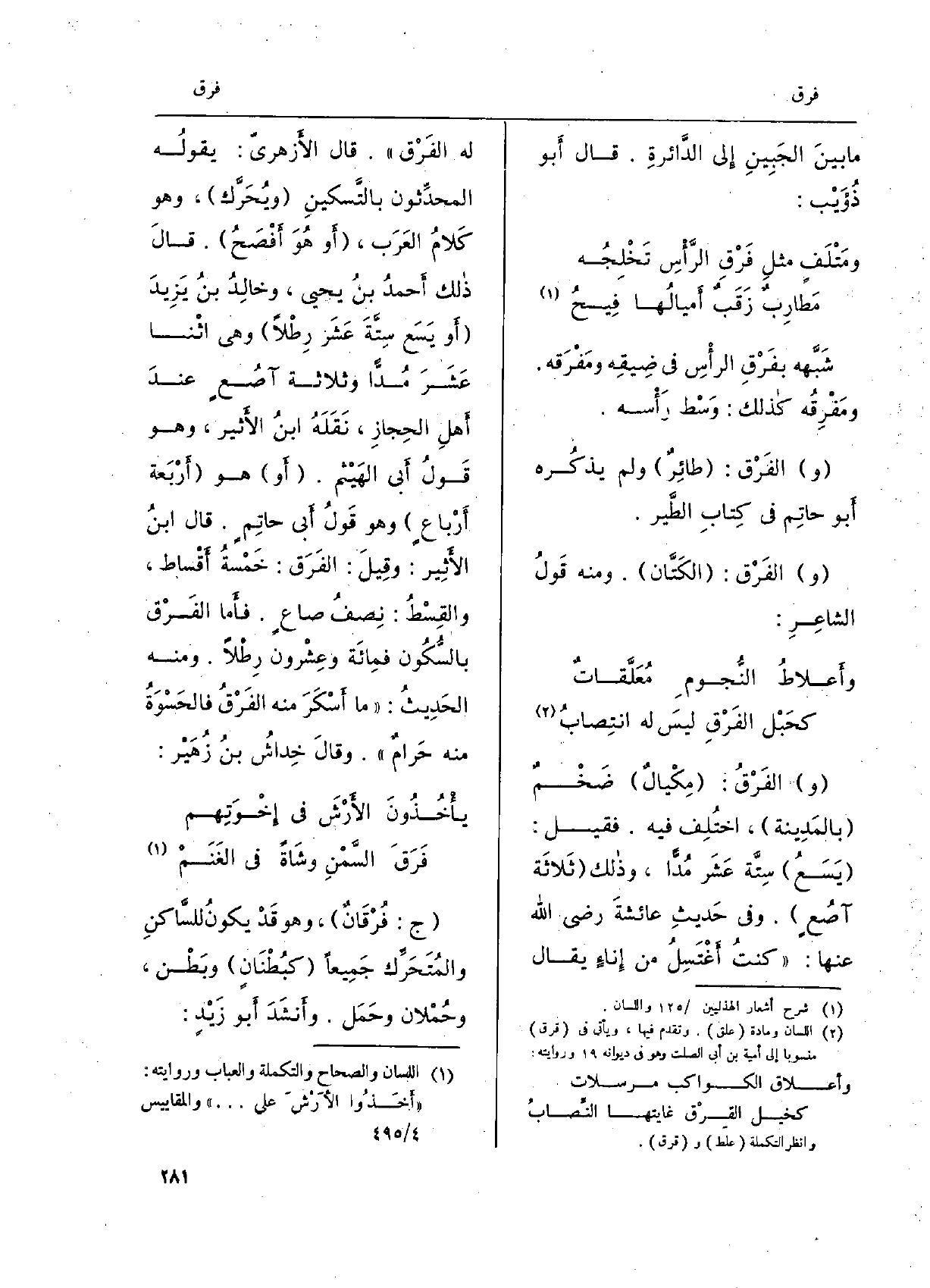ج: فُرْقانٌ، وَهُوَ قدْ يكون للسّاكنِ والمتحرِّك جَميعاً كبُطْنانٍ وبَطْن، وحُمْلان وحَمَل. وأنشَدَ أَبُو زيْد:
