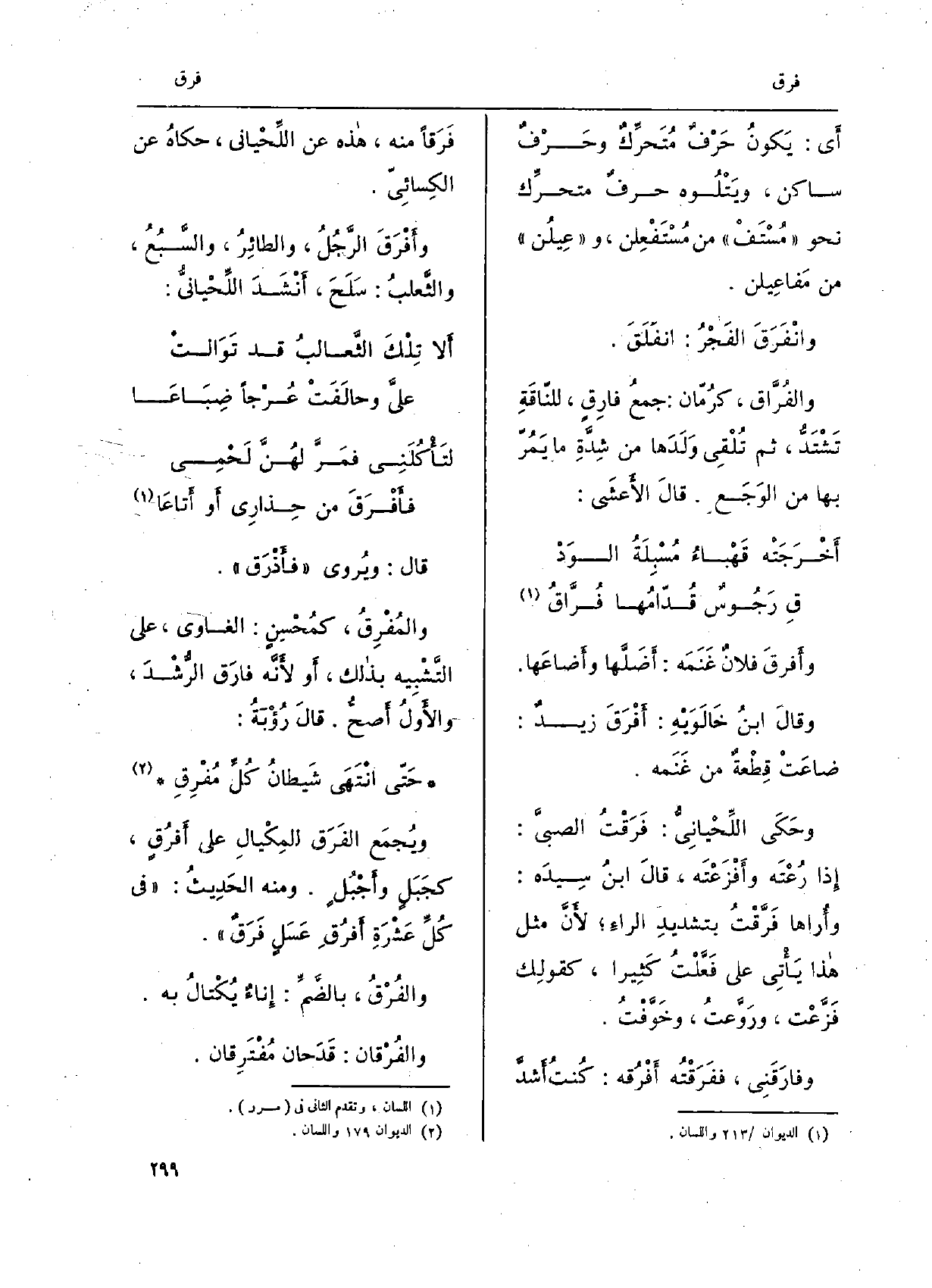 الفَجْرُ: انفَلَق. والفُرّاق، كرُمّان: جمعُ فارِقٍ، للنّاقَةِ تشتدّ، ثمَّ تُلْقِي ولَدَها من شدّةِ مَا يَمُرّ بهَا من الوَجَع. قَالَ الْأَعْشَى: