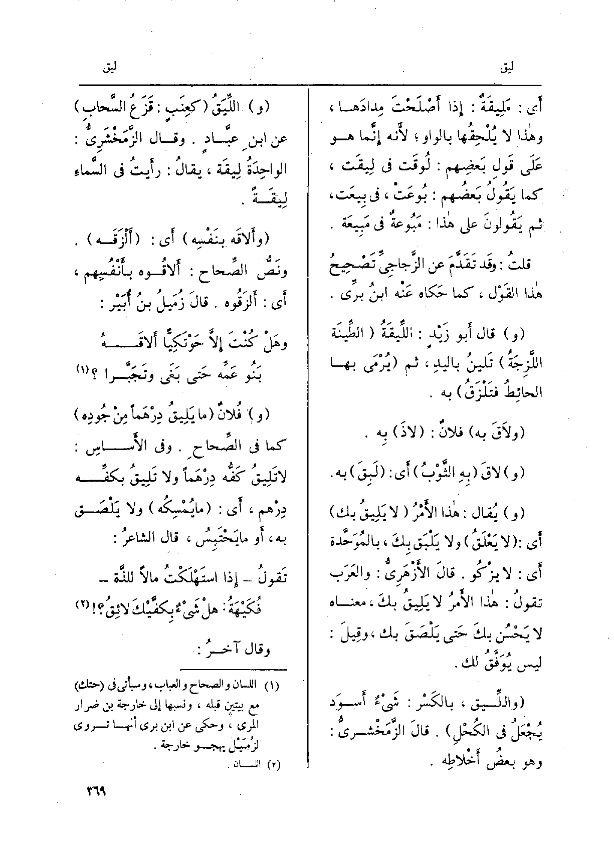 أَي: {مَليقَةٌ: إِذا أصلَحْتَ مِدادَها، وَهَذَا لَا يُلحِقُها بِالْوَاو لِأَنَّهُ إِنَّمَا هُوَ على قولِ بعضِهم: لوقَت فِي ليقَت، كَمَا يَقُول بعضُهم: بوعَتْ، فِي بيعَت، ثمَّ يَقُولُونَ على هَذَا: مَبوعةٌ فِي مَبيعَة. قلت: وَقد تقدّم عَن الزّجاجيّ تصْحيحُ هَذَا القَوْل، كَمَا حَكَاهُ عَنهُ ابنُ برّيّ. وَقَالَ أَبُو زيدٍ:} اللّيقَةُ الطينة اللّزِجَة تلينُ باليدِ، يم يُرْمى بهَا الحائِطُ فتَلْزَقُ بِهِ. {ولاقَ بِهِ فلانٌ: لَاذَ بِه. ولاقَ بهِ الثّوْبُ أَي: لَبِقَ بِهِ.