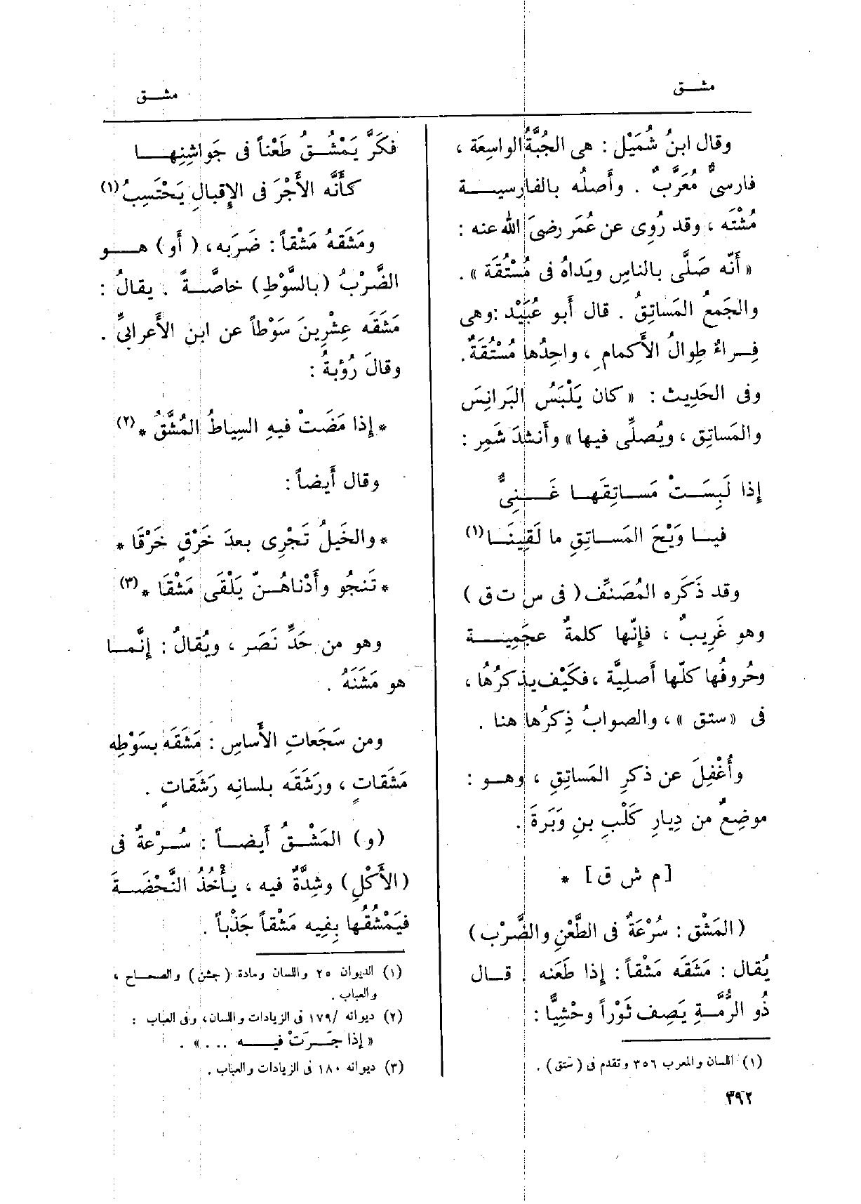 وَهُوَ غريبٌ، فإنّها كلمةٌ عجَميّة وحُروفُها كلّها أصليّة، فكيْف يذكرُها، فِي ستق، والصوابُ ذكرُها هُنَا. وأُغْفِلَ عَن ذكرِ المَساتِقِ، وَهُوَ: موضِعٌ من دِيارِ كلْبِ بنِ وبَرة.