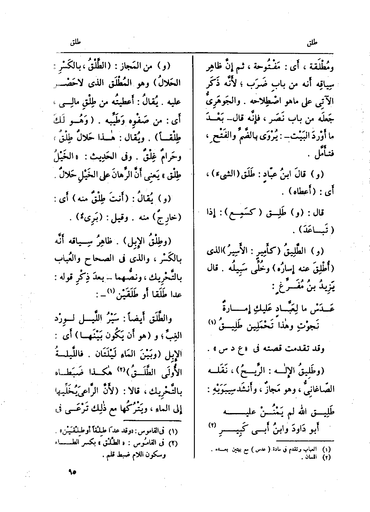 ونصُّهما بعدَ ذِكْرِ قَوْله: عدا طَلَقا أَو طَلَقَيْن: والطّلَق أَيْضا: سيْرُ اللّيل لوِرْد الغِبِّ وَهُوَ أَن يكون بيْنَهما أَي: الإبِل وبيْن الماءِ ليْلَتان. فاللّيلَةُ الأولى الطَّلَق هَكَذَا ضَبَطاه بالتّحْريك، قَالَا: لأنّ الرّاعي يُخَلّيها الى الماءِ، ويتْرُكُها مَعَ ذلِك ترْعَى فِي