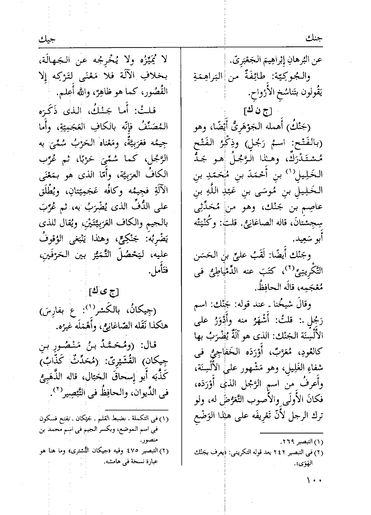 } جِيكانُ، بِالْكَسْرِ بفارسَ هَكَذَا نَقَله الصَّاغَانِي، وأَهْمَلَه غَيره. قَالَ: ومُحمَّدُ بنُ مَنْصُورِ بنِ جِيكان القُشَيرِيّ: مُحَدِّثٌ كَذّابٌ كَذَّبَه أَبو إِسحاقَ الحَبّال، قَالَه الذَّهَبيُ فِي الدِّيوان، والحافِظ فِي التّبصِير.