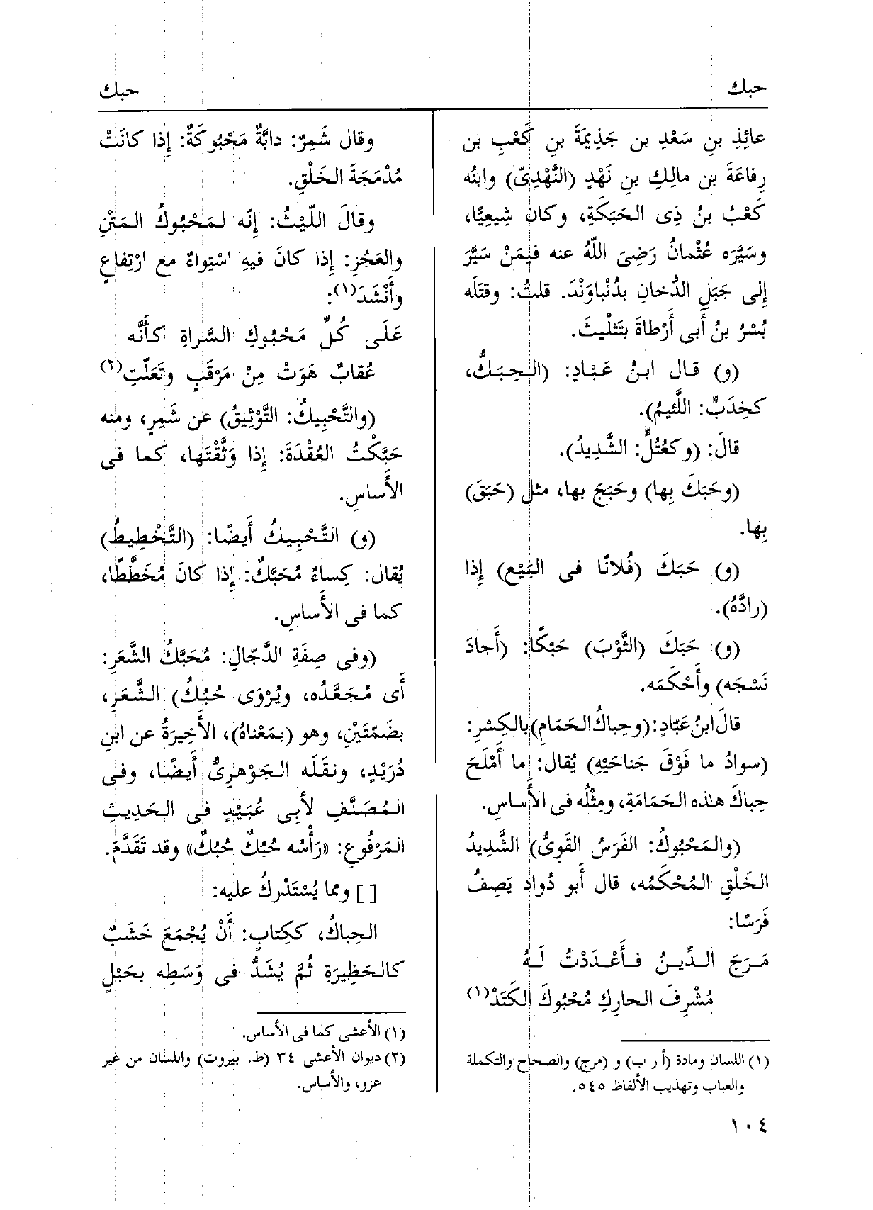 قالَ: وكعُتُل: الشَّدِيدُ. وحَبَكَ بِها وحَبَجَ بهَا، مثل حَبَقَ بهَا. وحَبَكَ فُلاناً فِي البَيع إِذا رادَهُ.