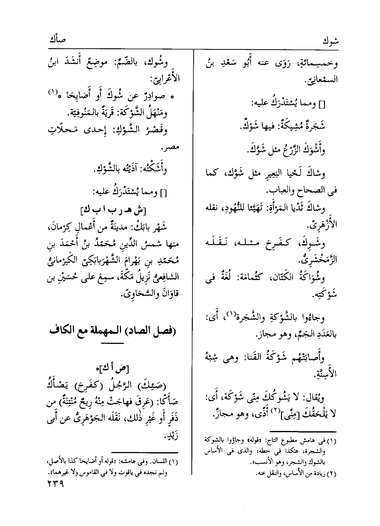 (فصل الصَّاد الْمُهْملَة مَعَ الْكَاف)