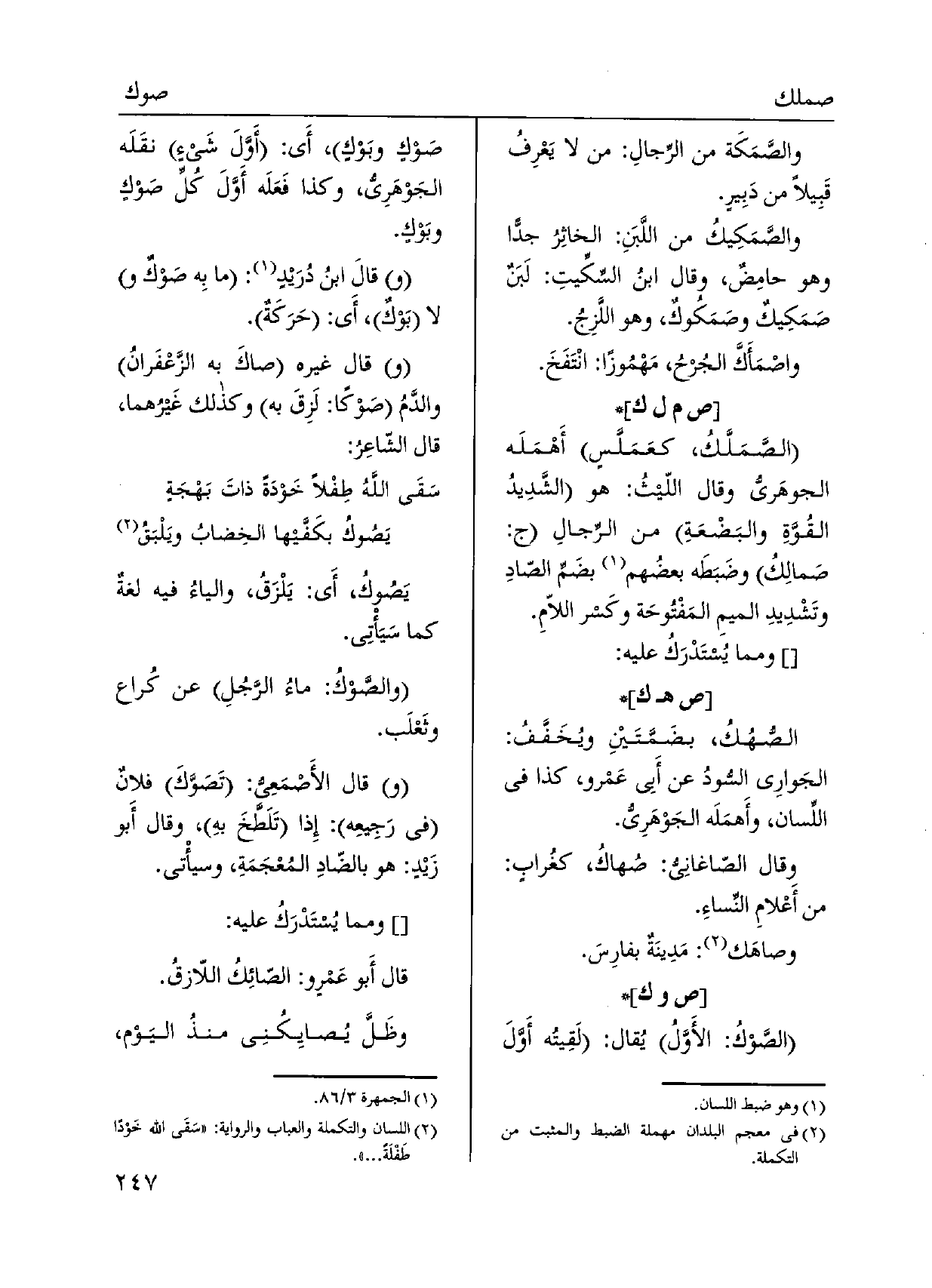 الصَّمَلَّكُ، كعَمَلَّسٍ أَهْمَلَه الجوهَريُّ وَقَالَ اللّيثُ: هُوَ الشَّدِيدُ القُوَّةِ والبَضْعَةِ من الرجالِ صَمالِكُ وضَبَطَه بعضُهم بضَمِّ الصّادِ وتَشْدِيدِ الميمِ المَفْتُوحَة وكَسر اللاّمِ.