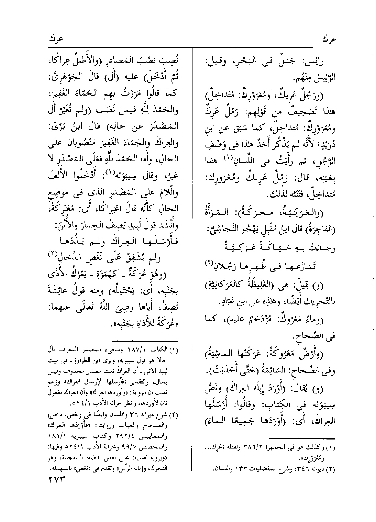 رائِس: جَبَلٌ فِي البَحْرِ، وَقيل: الرَّئِيس مِنْهُم. ورَجُلٌ عَرِيكٌ، ومُعْرَوْرِكٌ: مُتَداخِل هَذَا تَصْحِيفٌ من قَوْلِهم: رَمْلٌ عَرِكٌ ومُعْرَوْرِكٌ: مُتداخِلٌ، كَمَا سبَق عَن ابنِ درَيْدٍ، لأَنَّه لم يَذْكُر أَحَد هَذَا فِي وَصْفِ الرَّجُلِ، ثمَّ رأَيْتُ فِي اللِّسانِ هَذَا بِعَينِه، قَالَ: رَمْلٌ عَرِيكٌ ومُعْرَورِك: مُتداخِلٌ، فتَنَبَّه لذَلِك. والعَرَكِيَّةُ، محرّكَةً: المَرأَةُ الفاجِرَةُ قَالَ ابنُ مُقْبِلٍ يَهْجُو النَّجاشِيَ: