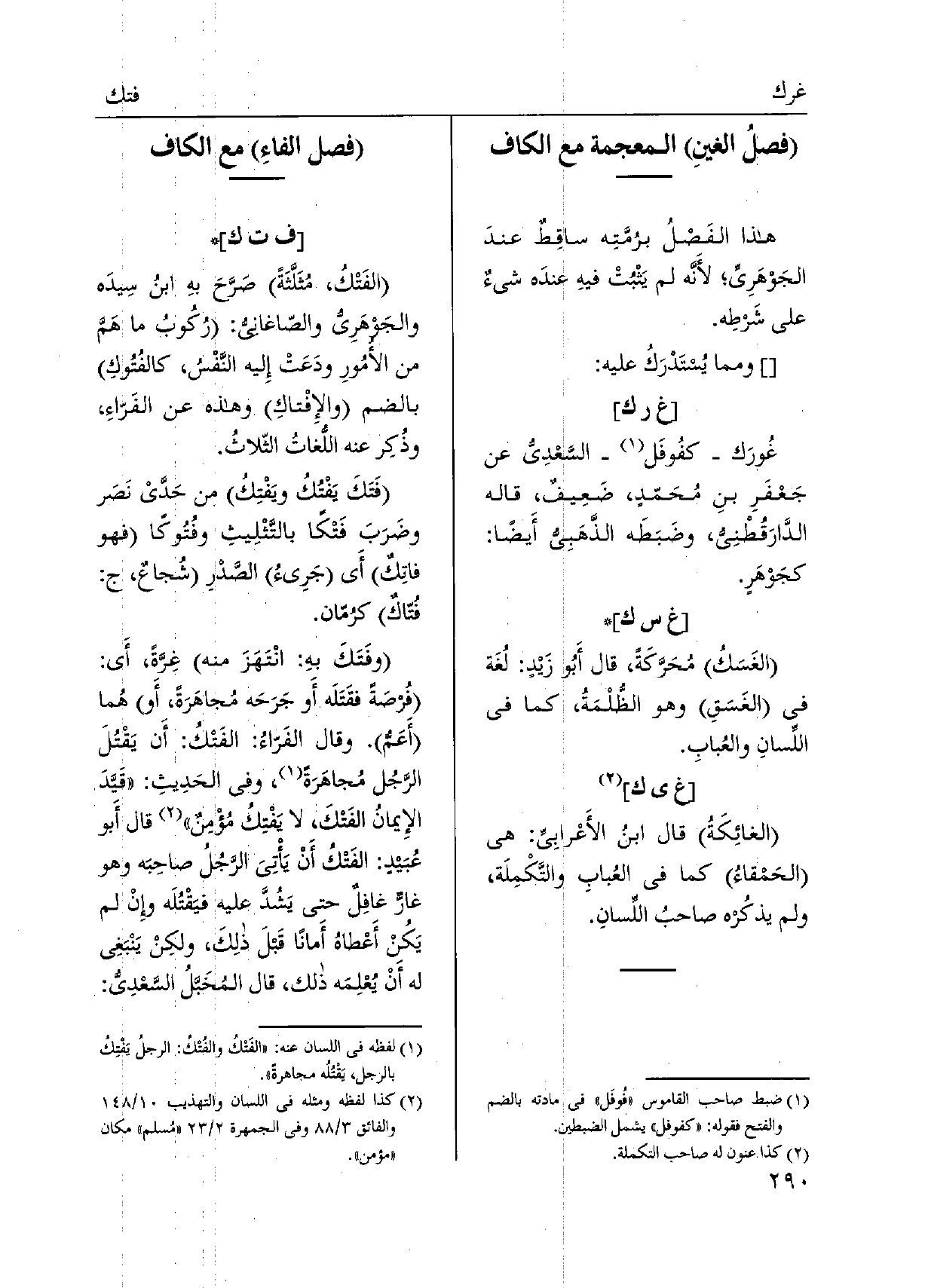(فصل الغينِ الْمُعْجَمَة مَعَ الْكَاف)
