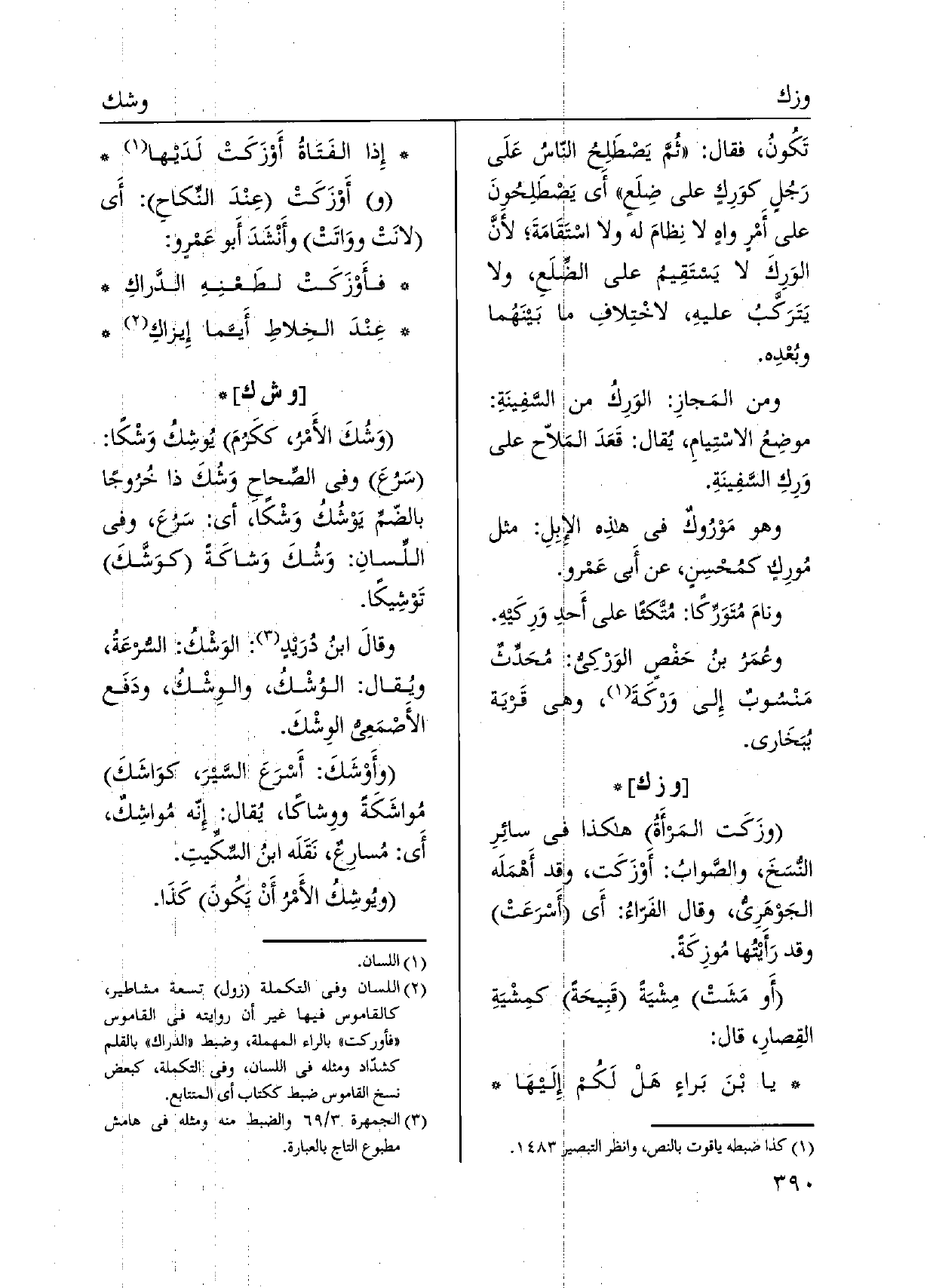 } وزَكَت المَرأَةُ هَكَذَا فِي سائِرِ النُّسَخَ، والصَّوابُ: {أَوْزَكَت، وَقد أَهْمَلَه الجَوْهَرِيُّ، وَقَالَ الفَرّاءُ: أَي أَسْرَعَتْ وَقد رَأَيْتُها} مُوزِكَةً. أَو مَشت مِشْيَةً قَبِيحَةً كمِشيَةِ القِصارِ، قَالَ: يَا بْنَ بَراءٍ هَلْ لَكُم إِلَيهَا إِذا الفَتَاةُ أَوْزَكَتْ لَدَيْها وأَوْزَكَتْ عِنْدَ النِّكاحِ: أَي لانت وواتت وأَنْشَدَ أَبو عَمرو: {فأَوْزَكَتْ لطَعْنِهِ الدَّراكِ عِنْدَ الخِلاطِ أَيَما} إِيزاكِ