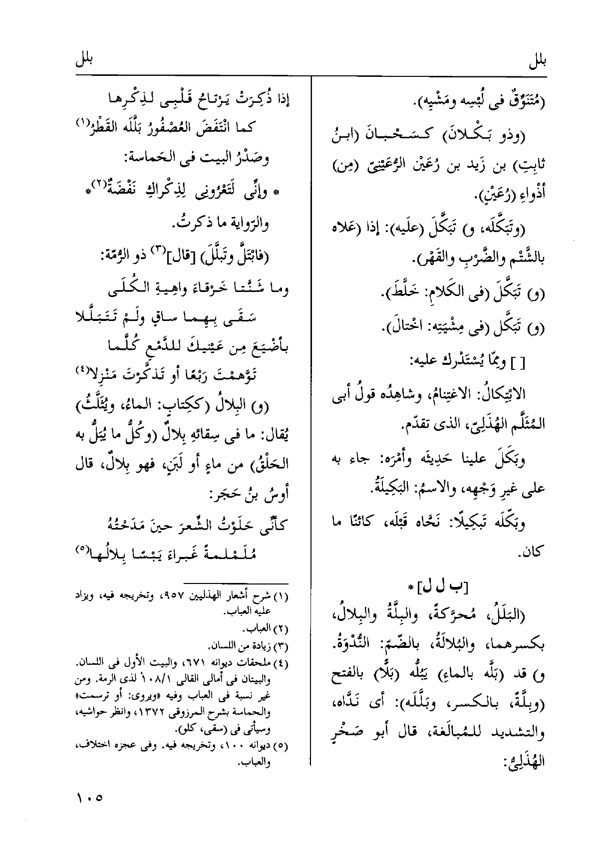 وصَدرُ الْبَيْت فِي الحَماسة: وَإِنِّي لَتَعْرُوني لِذِكْراكِ نَفْضَةٌ وَالرِّوَايَة مَا ذكرتُ. {فابْتَلَّ} وتَبلَّلَ قَالَ، ذُو الرُّمّة: