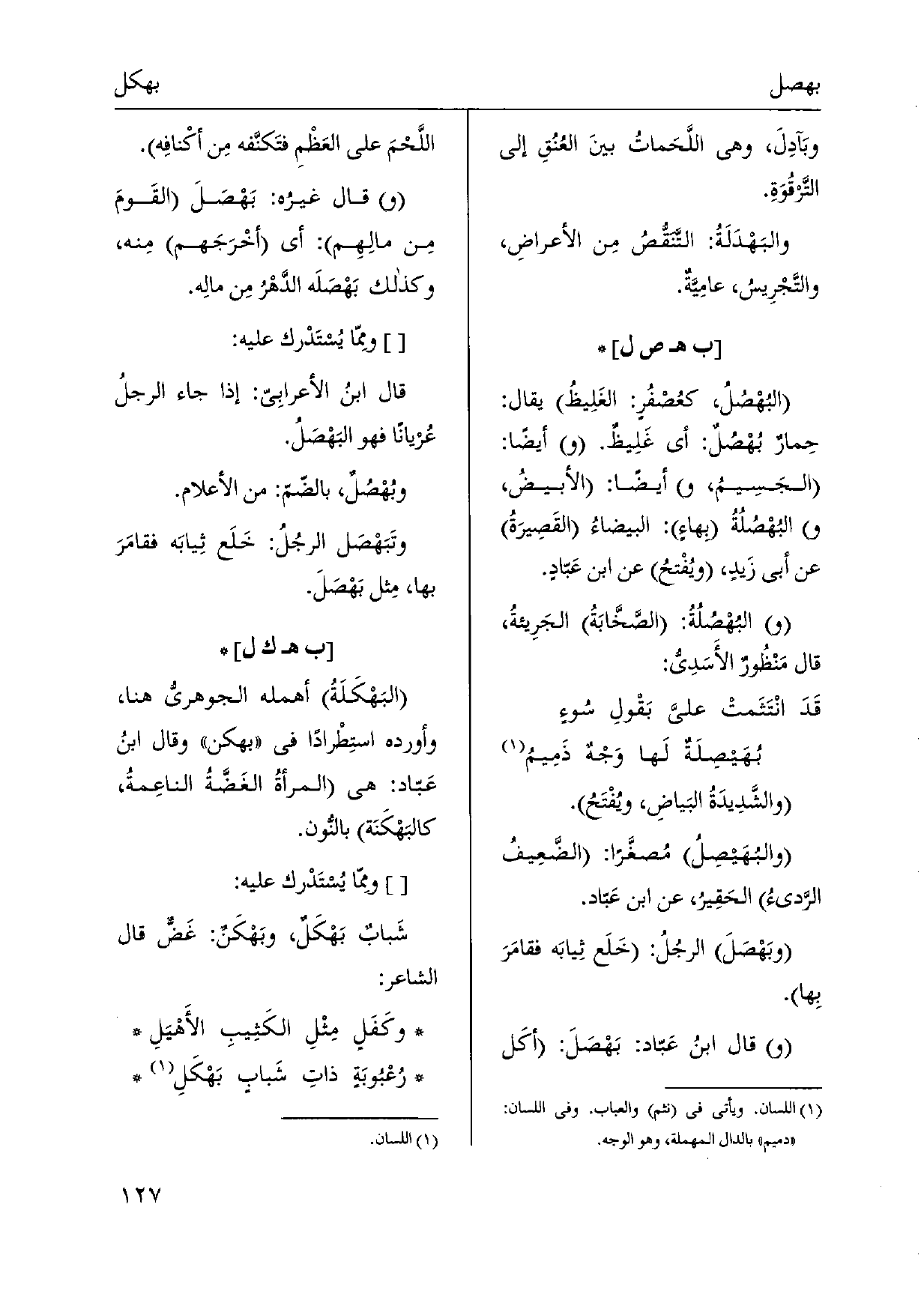 وتَبَهْصَل الرجُلُ: خَلَع ثِيابَه فقامَرَ بهَا، مِثل بَهْصَلَ.