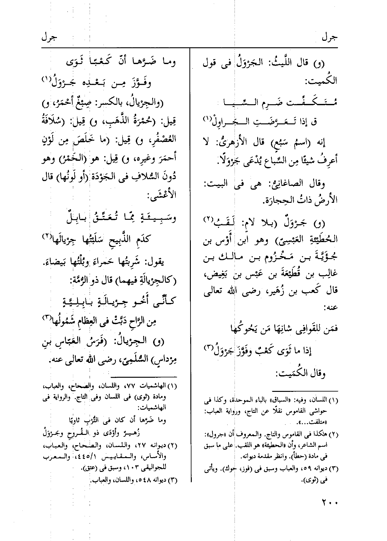 قَالَ اللَّيثُ: الجَرْوَلُ فِي قَول الكُميت: