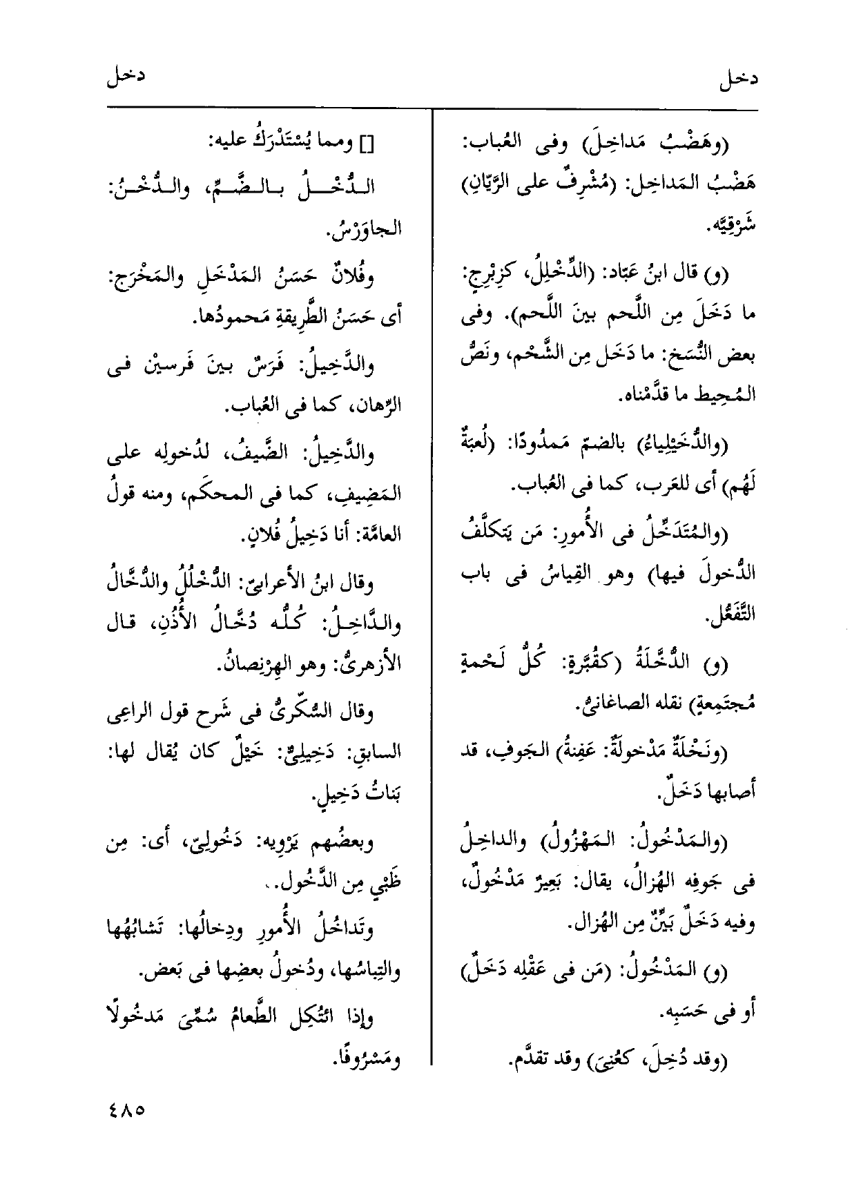 وهَضْبُ مَداخِلَ وَفِي العُباب: هَضْبُ المَداخِل: مُشْرِفٌ على الرَّيّانِ شَرْقِيَّه. قَالَ ابنُ عَبّاد: الدِّخْلِلُ، كزِبْرِجٍ: مَا دَخَلَ مِن اللَّحم بينَ اللَّحم. وَفِي بعض النسَخ: مَا دَخَل مِن الشَّحْم، ونَصُّ المُحِيط مَا قدَّمْناه.