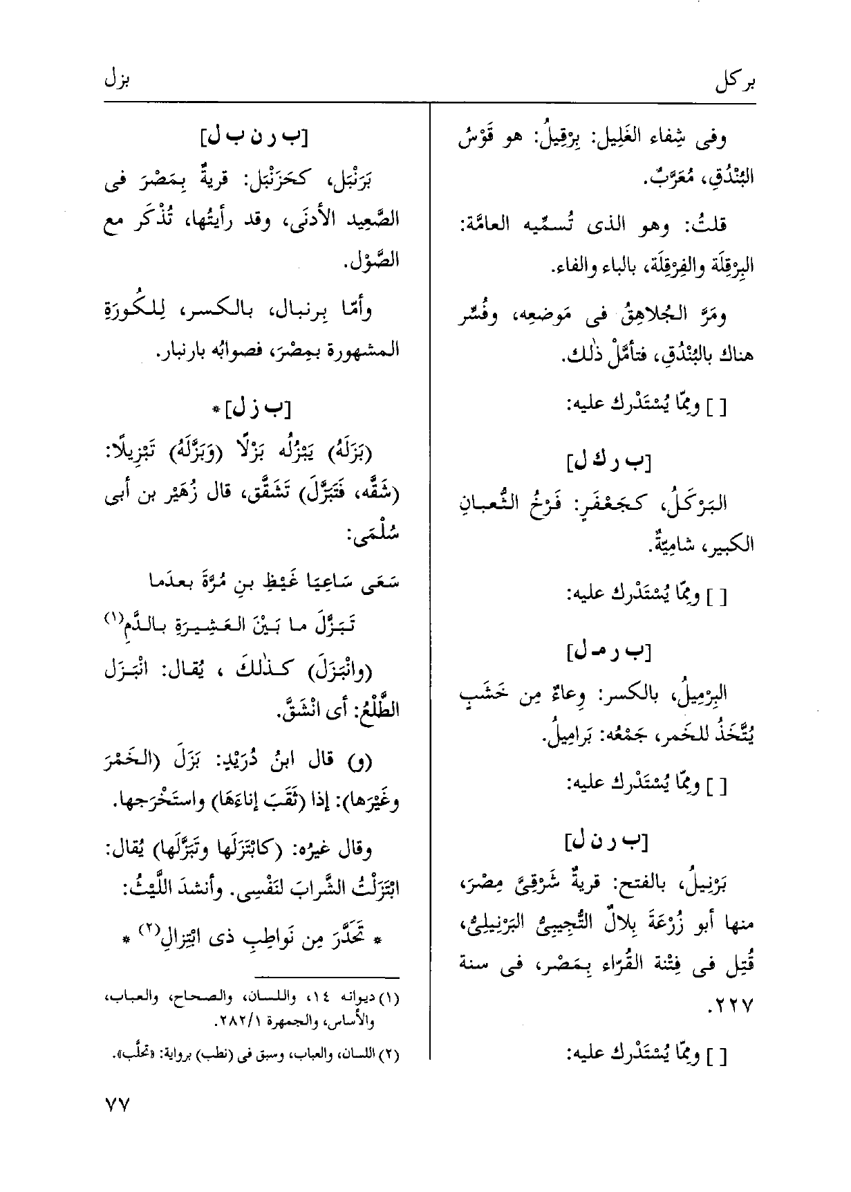 وَفِي شِفاء الغَلِيل: بِرْقِيلُ: هُوَ قَوْسُ البُنْدُقِ، مُعَرَّبٌ.