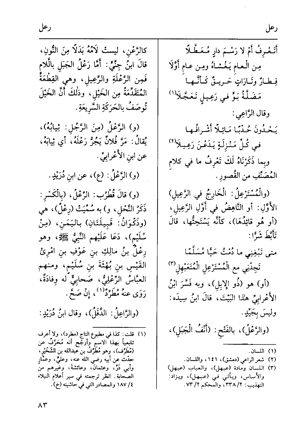 عنهُ مُطَرِّدٌ، إِنْ صَحَّ. والرَّاعِلُ: الدَّقَلُ، وَقَالَ ابنُ دُرَيْدٍ: