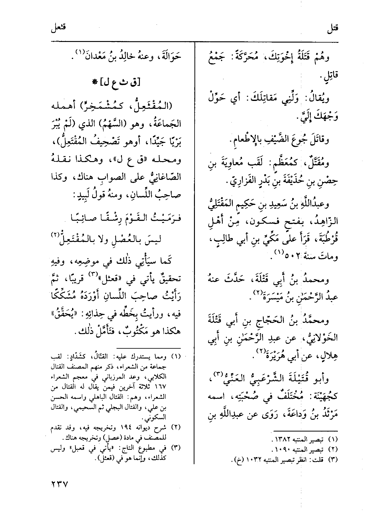 كَمَا سَيَأْتِي ذَلِك فِي موضعِه، وَفِيه تحقيقٌ يَأْتِي فِي قعثل قَرِيبا، ثمّ رأيتُ صاحبَ اللِّسان أوردهُ مُشَكِّكاً فِيهِ، ورأيتُ بخطِّه فِي حِذائِه: يُحَقَّقُ، هَكَذَا هُوَ مكتوبٌ، فتأمَّلْ ذَلِك.