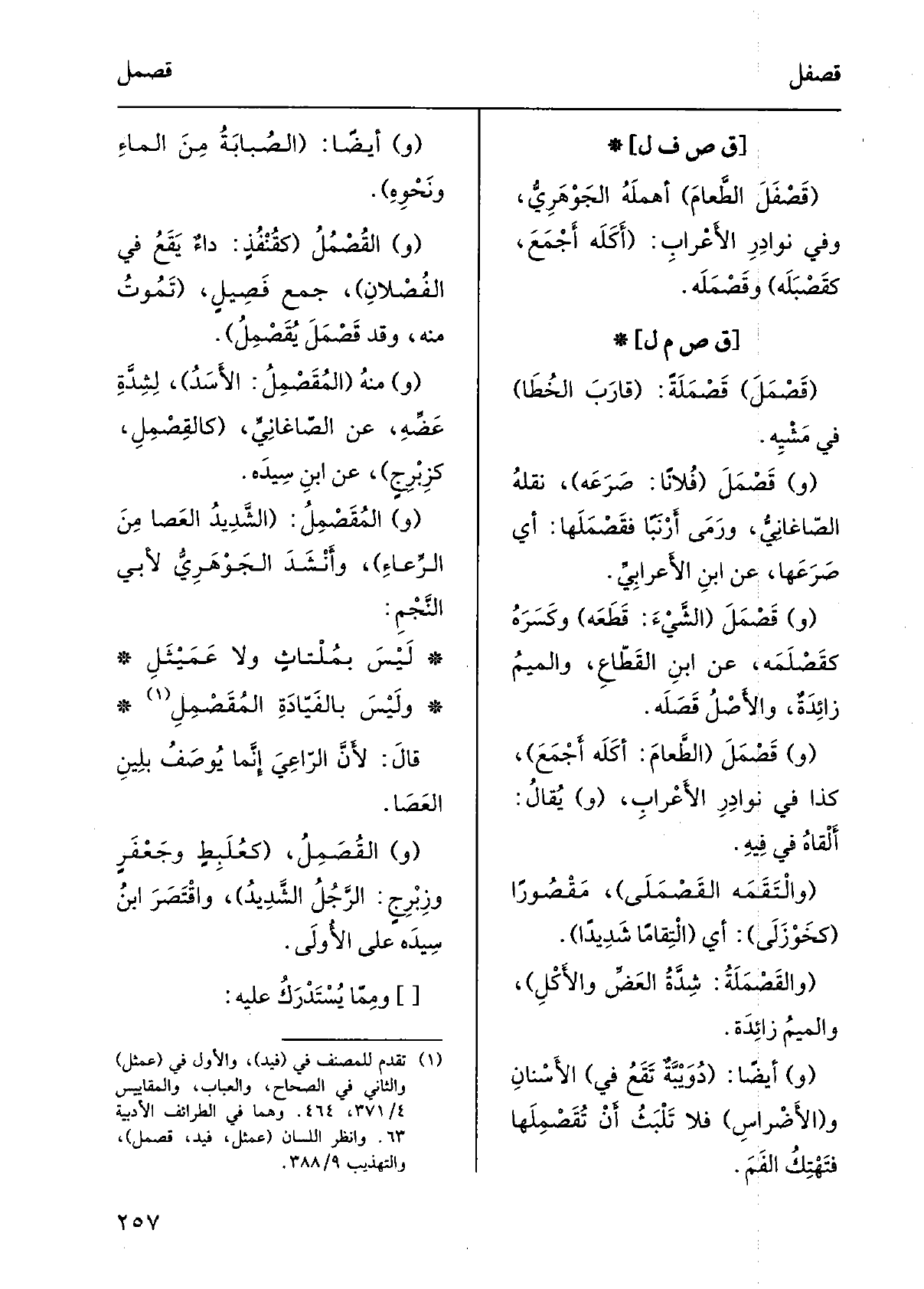 قَصْفَلَ الطعامَ أهمله الجَوْهَرِيّ، وَفِي نوادرِ الْأَعْرَاب: أَكَلَه أَجْمَعَ، كَقَصْبَلَه وَقَصْملَه.