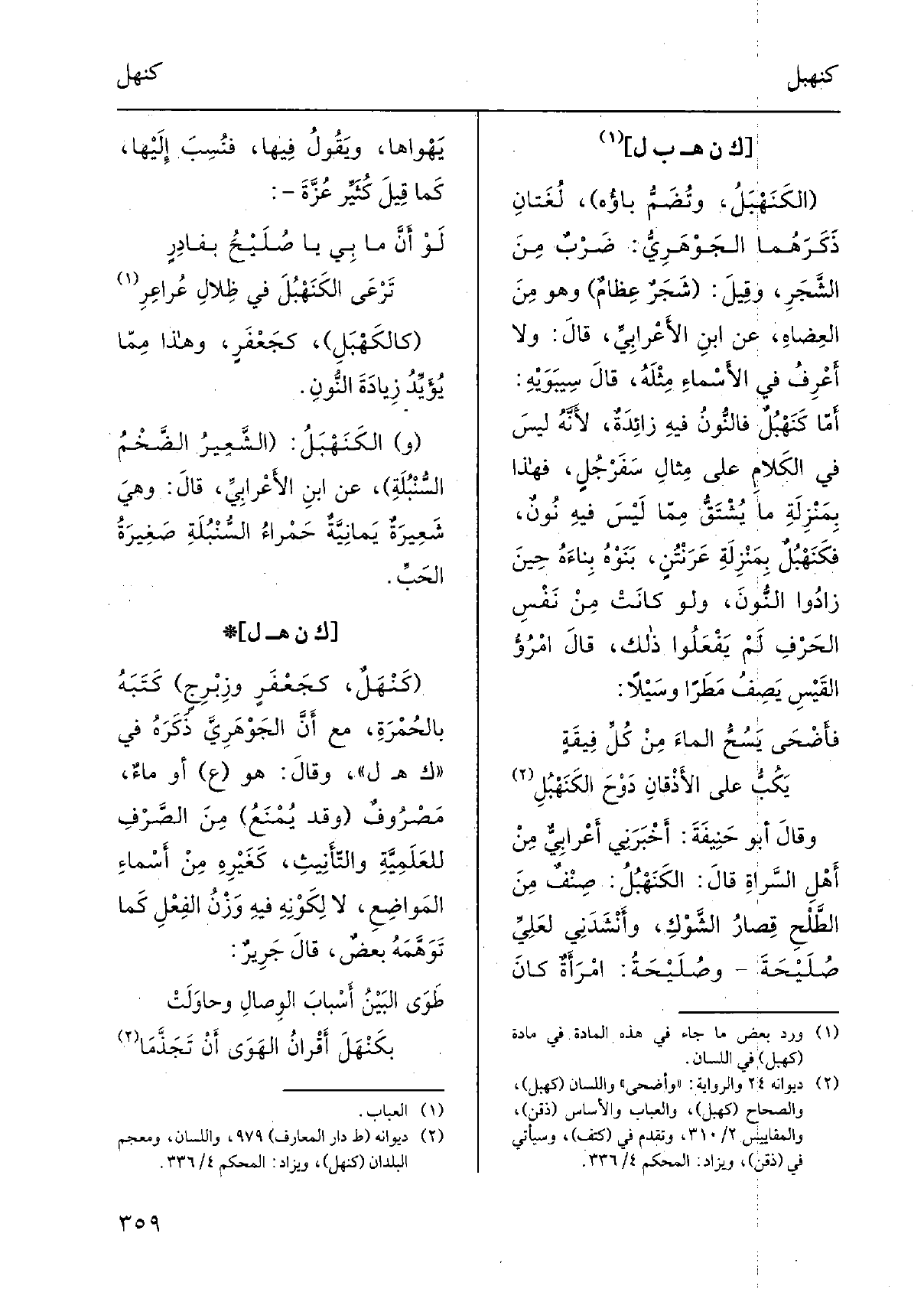 وَقَالَ أَبُو حنيفةَ: أَخْبَرني أعرابيٌّ من أهلِ السَّراةِ قَالَ: الكَنَهْبُلُ: صِنفٌ من الطَّلْحِ قِصارُ الشَّوكِ، وأنشدني لعليِّ صُلَيْحةَ وصُلَيْحةُ: امرأةٌ كانَ يَهْوَاها، ويقولُ فِيهَا، فنُسِبَ إِلَيْهَا، كَمَا قيل كُثَيِّرُ عَزَّةَ: