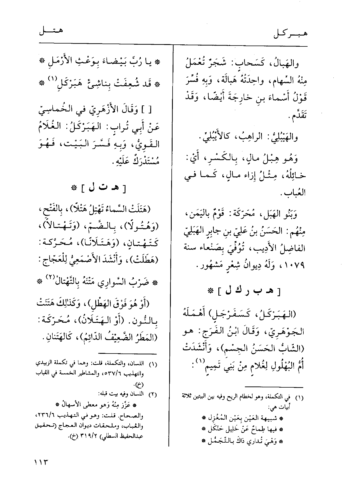 (وَجَمَلٌ) هُراكِلٌ، (وَرَجُلٌ هُراكِلٌ، كَعُلابِطٍ: ضَخْمٌ جَسِيمٌ. والهَراكِلَةُ: ضِخامُ السَّمَكِ) ، وَبِهِ فُسِّر قَوْلُ ابْنِ أَحْمَرَ الباهِلِيّ يَصِفُ دُرَّةً: