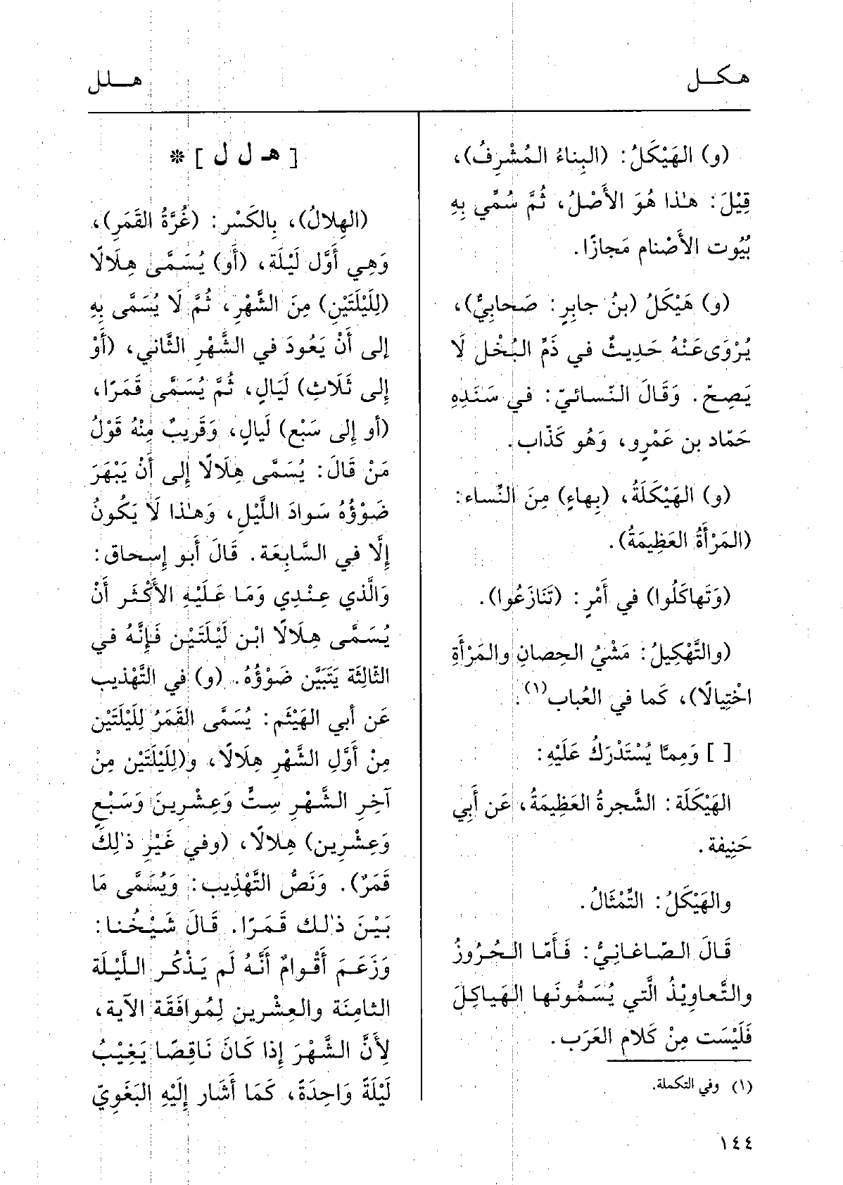 وَقَالَ: {الحَيَّهَلْ: الأَذانُ، والنابانِ: العَجُوزان، قَالَ: وَقَدْ عُرِّفَ بِالِإضَافَة أَيْضًا فِي قَول الآخر: