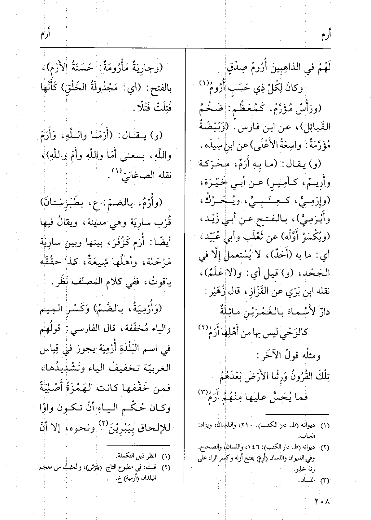 المصنّف أَنّ الجُموع كُلّها {لِأَكَمة، وَفِي نَظَر. (و) } أَكَمَةٌ: (هَضْبَةٌ من هِضابِ أَجَأ) عِنْد ذِي الجَلِيل، قَالَه نصر، (و) أَيْضا (ع، قُرْبَ الحاجِرِ) بِمِيلَيْن كَانَ عِنْده البَرِيدُ السادِسُ وَالثَّلَاثُونَ لحاجِّ بَغْدادَ، (يُقالُ لَهُ: {أَكَمَةُ العِشْرِقِ) . (} واسْتَأْكَمَ المَوْضِعُ: صَار {أَكَمًا) :، قَالَ أَبُو نُخَيْلة: